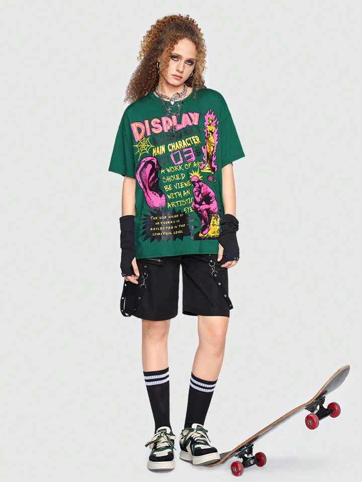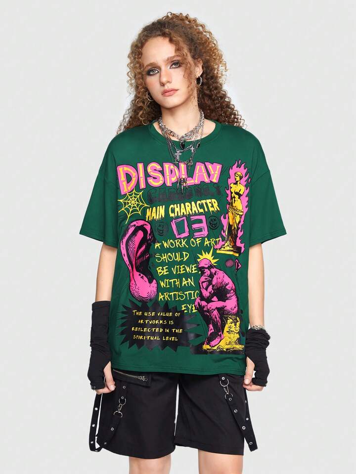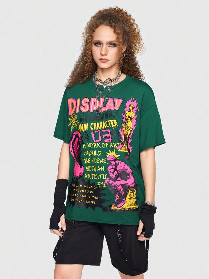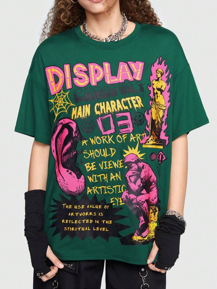 Street Life Drop Shoulder T-Shirt mit Buchstaben Grafik,