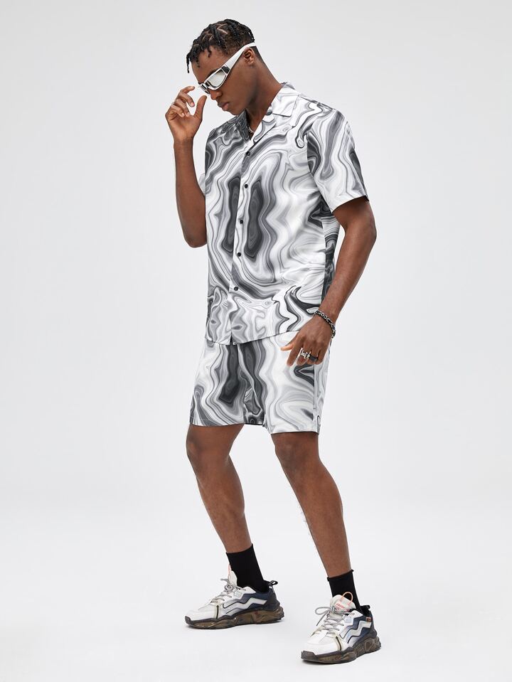 Street Life Straßenleben Herren Marmorprint Hemd & Shorts mit Tunnelzug Taille
