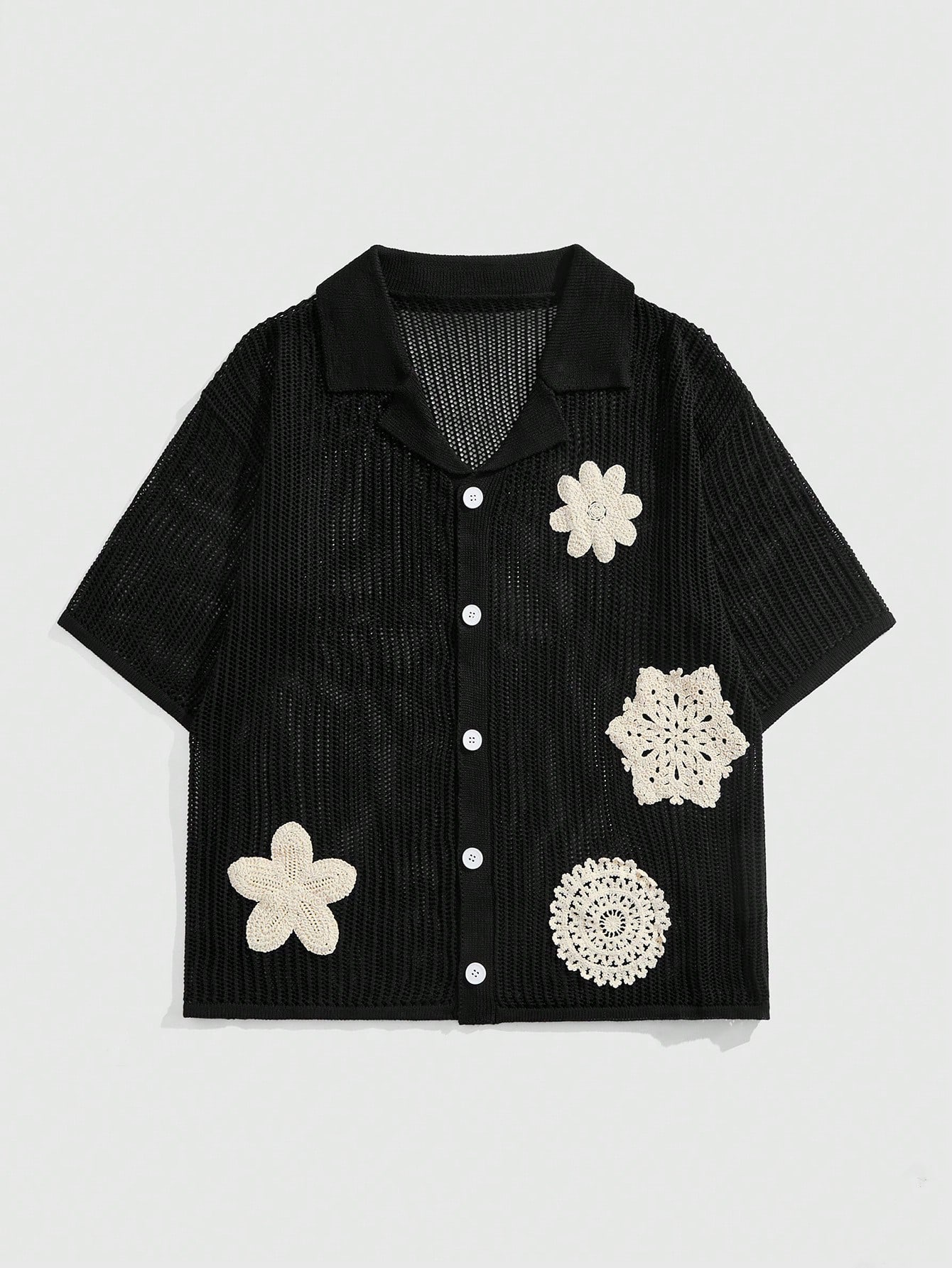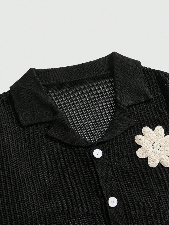 Street Life Herren Pullover mit Wendeknopfkragen, offener Vorderseite, wasserlöslichem Blumenmuster, Strick