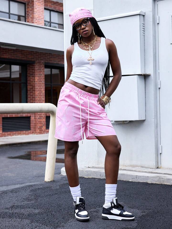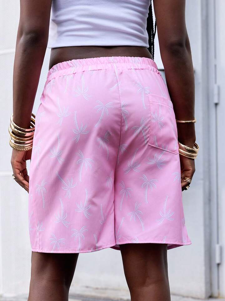 Street Life Damen Shorts mit Kordelzug in der Taille, allover Muster, Lässig vielseitig, in Pink, Sommer