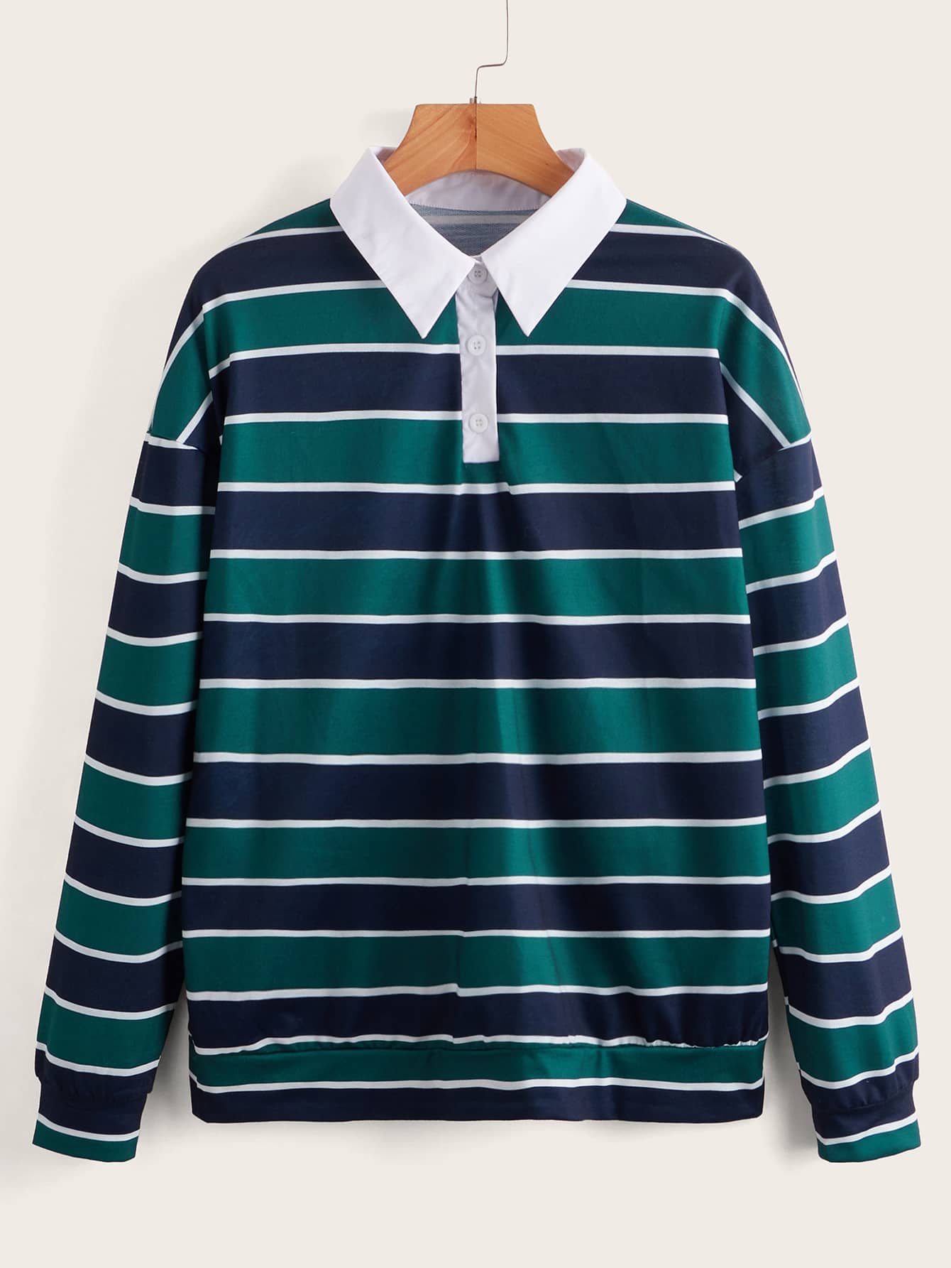 Polo T-Shirt mit Streifen, Drop Shoulder