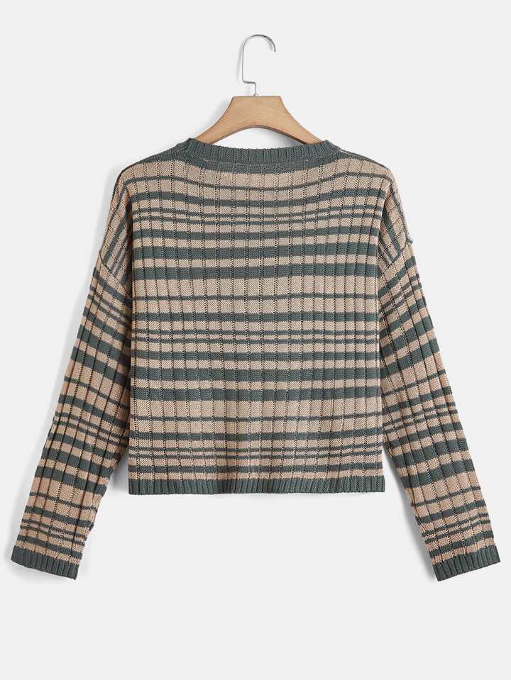 Pullover mit Streifen, Drop Shoulder