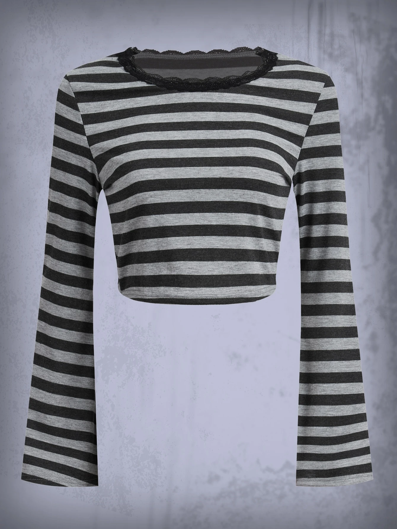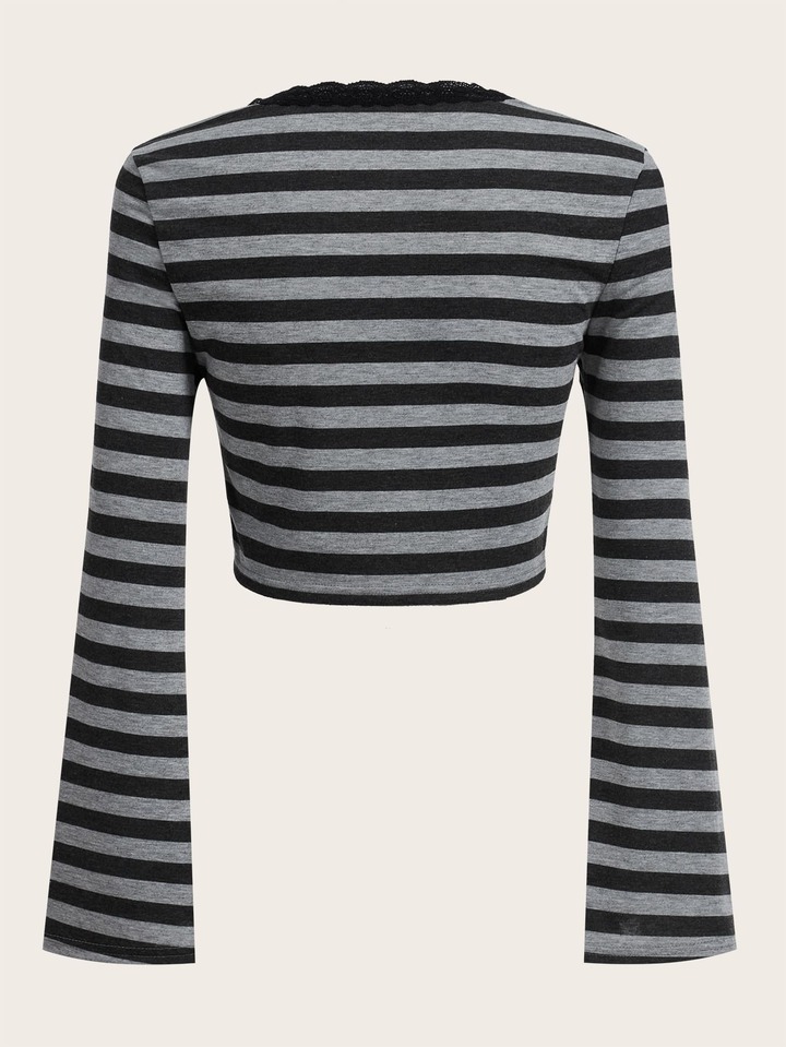T-Shirt mit Streifen Muster, Volant Ärmeln