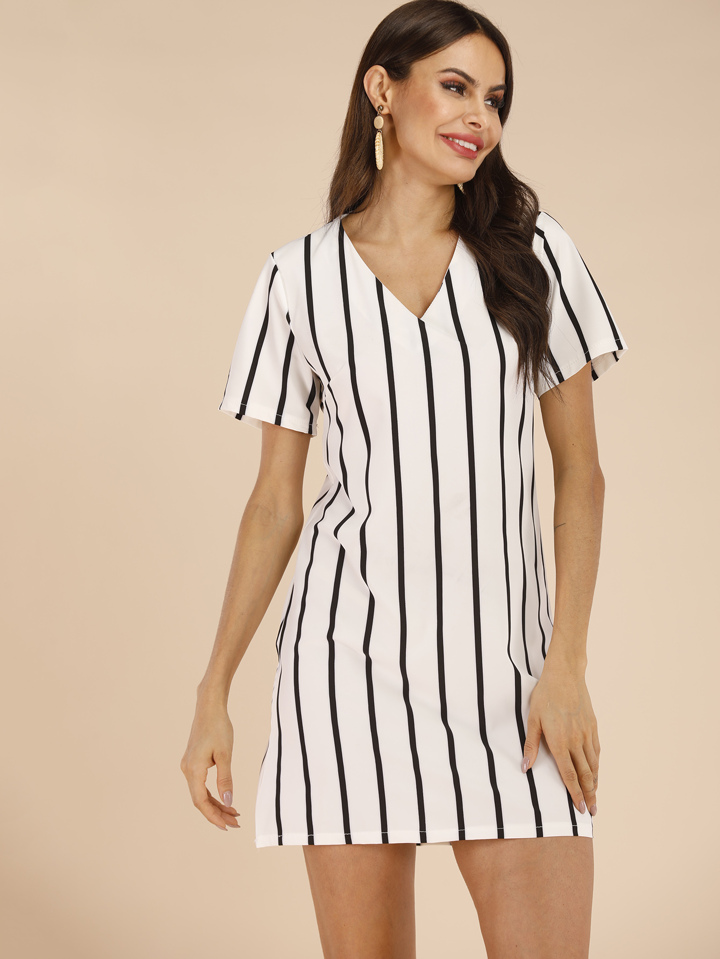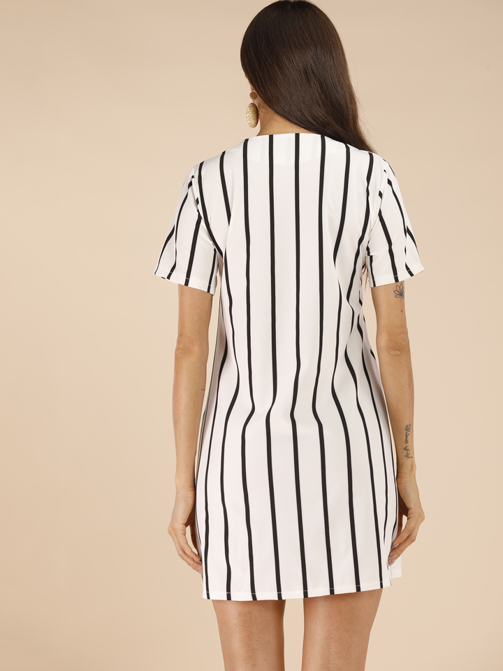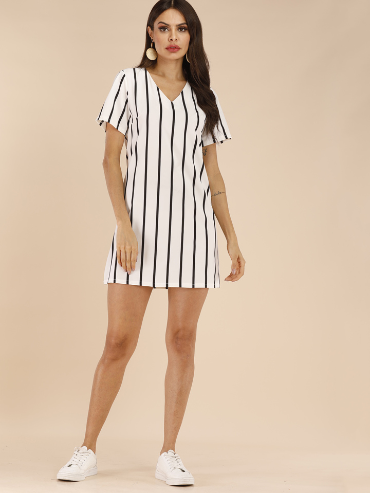 Tunik Kleid mit Streifen und V-Kragen