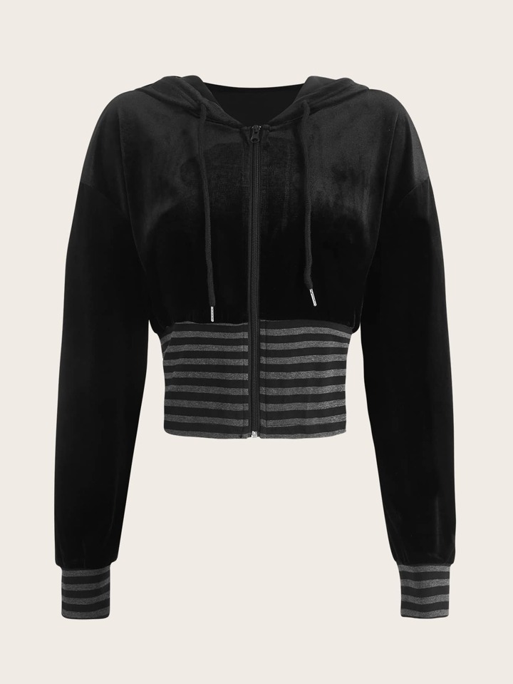 Jacke mit Streifen, Samt Reißverschluss, Kapuze
