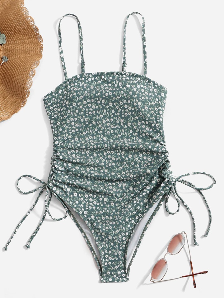 Badeanzug mit Blümchen Muster, Tunnelzug