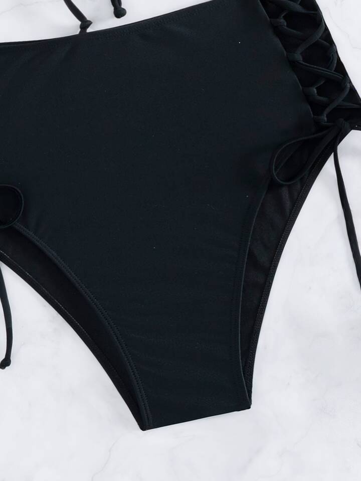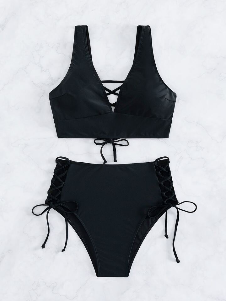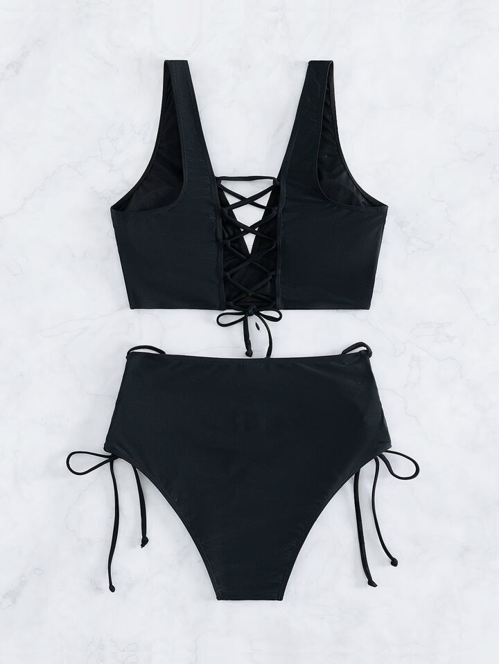 Mono Bikini Set mit Schnürung am Rücken, Tank Top und Hochtaillen Bikini-Unterteil, 2-teiliges Bikini-Set
