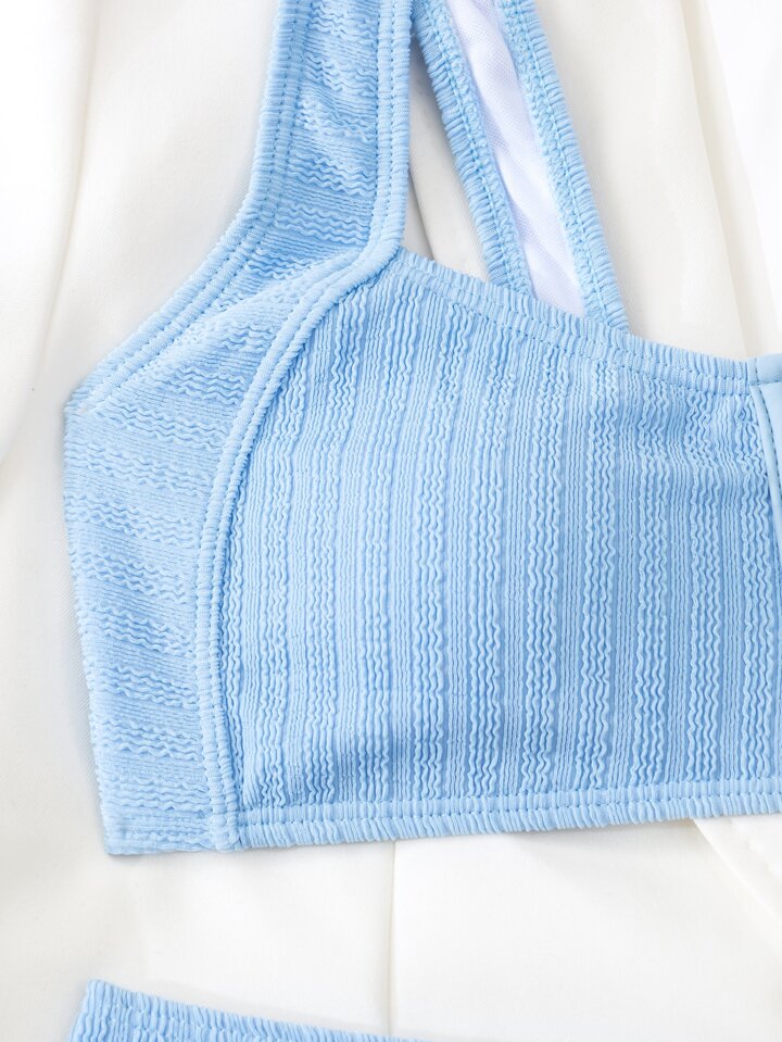Geripptes Bikini Set V Draht BH mit breiten Trägern und Unterteil mit hoher Taille 2 teiliger Badeanzug