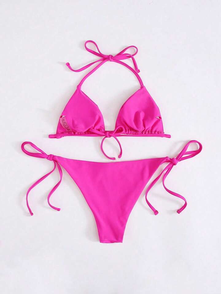Einfarbiges Bikini Set Triangle BH & Tanga Unterteil 2 teiliger Badeanzug