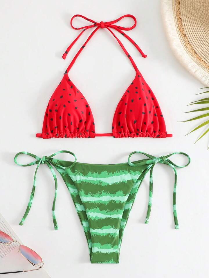 Sommer Strand Wassermelonen-Muster Neckholder Bikini Set, Urlaubs Bikini