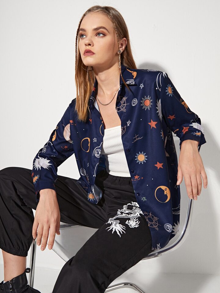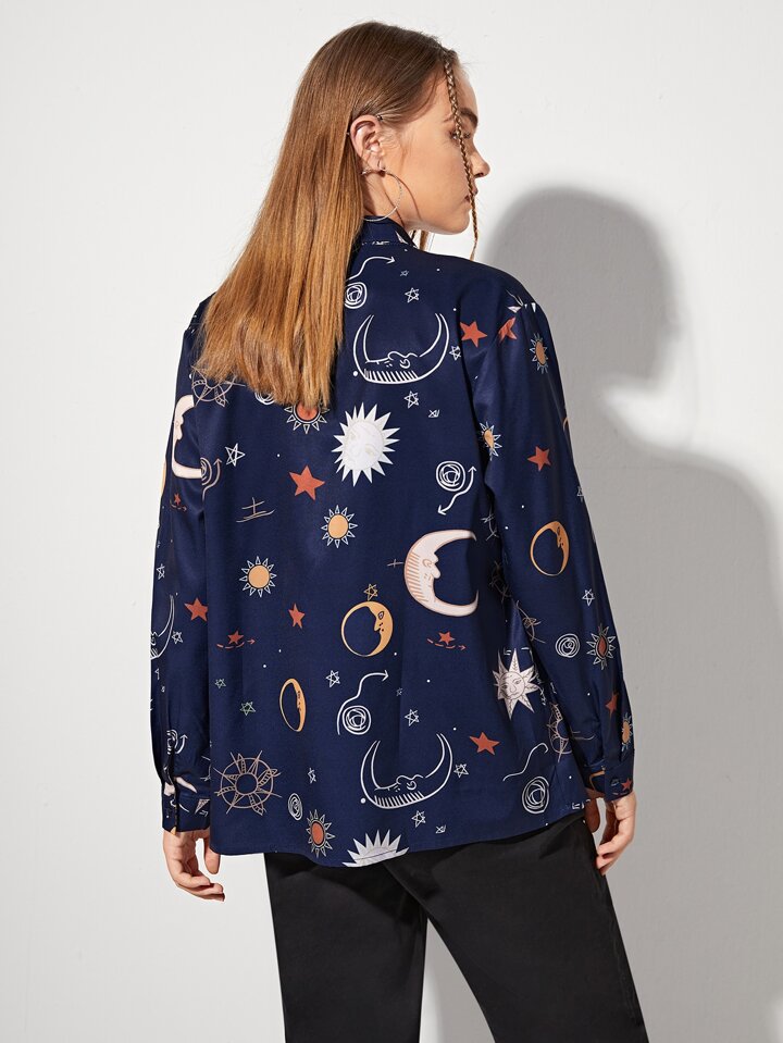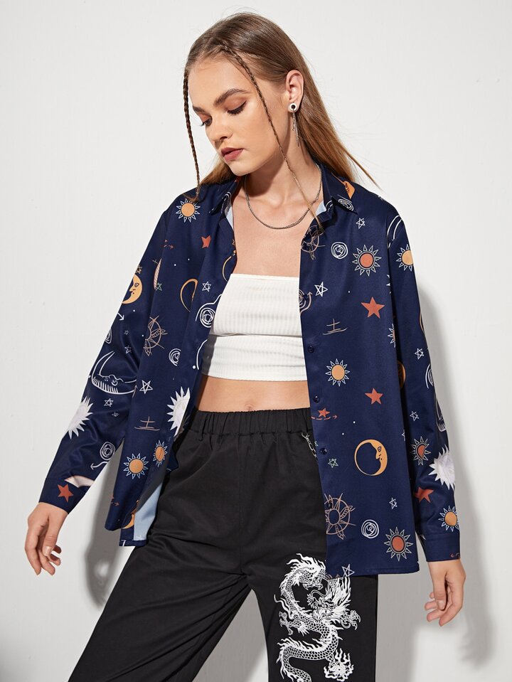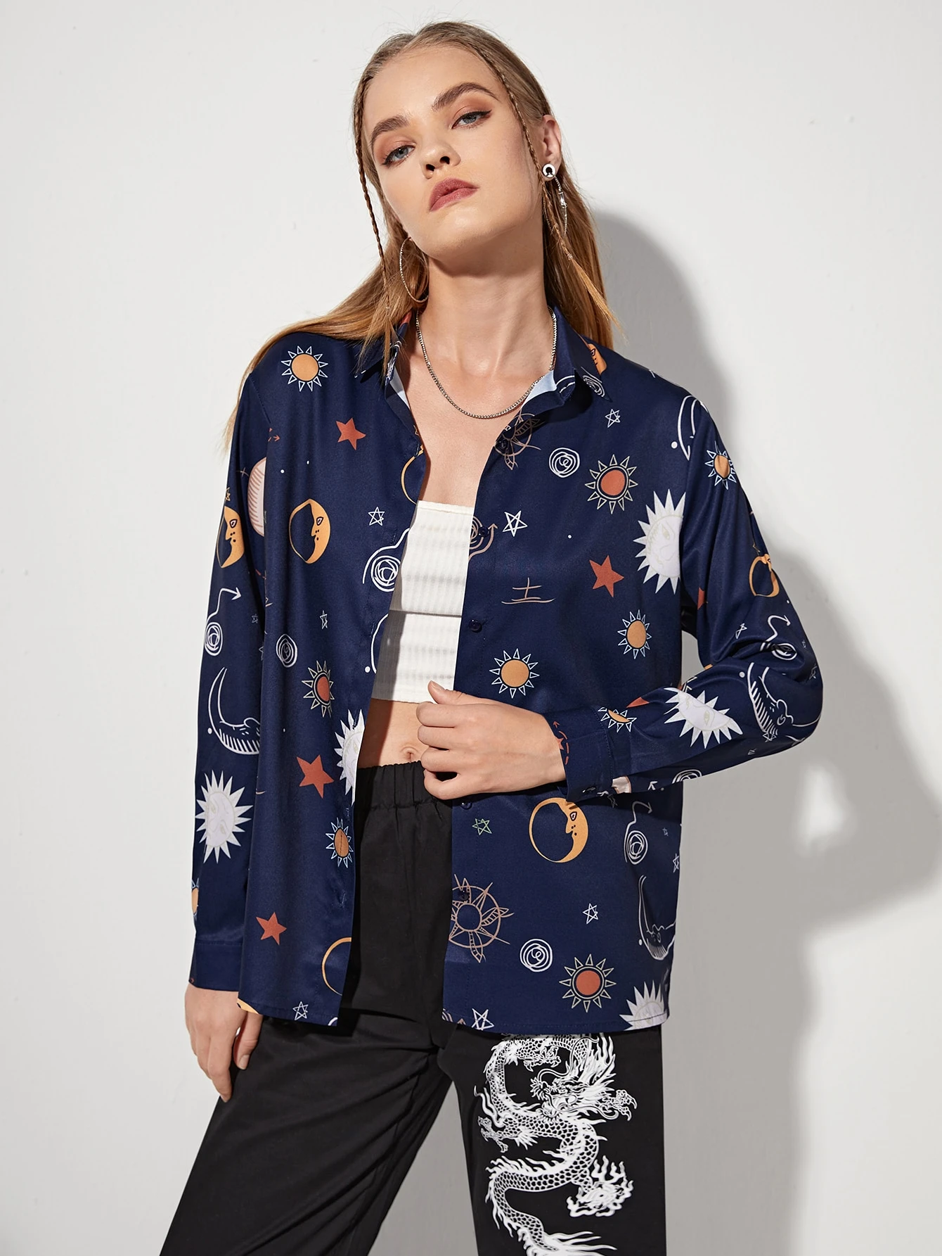 Shirt mit Sonne & Mond Grafik, Knopf vorne