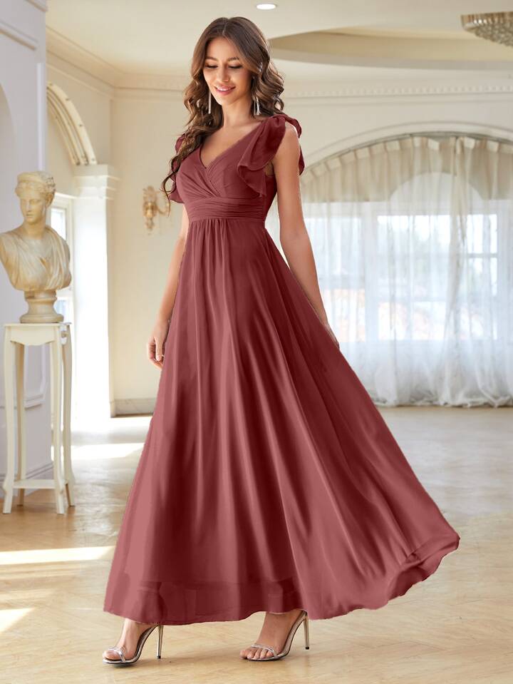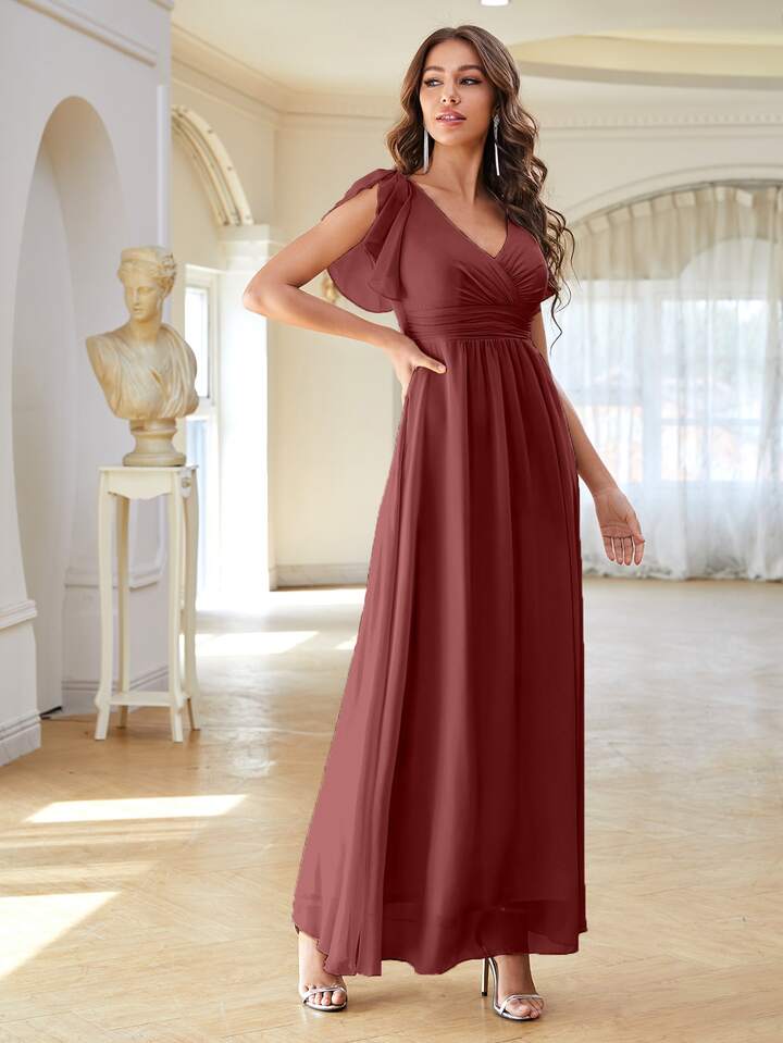 Chiffon Ballkleid mit überlappender Front und Schmetterlingärmeln