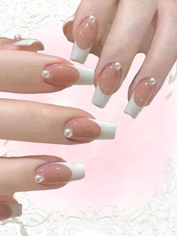 Sweetness 24 Stücke Lang Sarg Französische Stil Kunstnägel & 1 Stück Nagelfeile & 1 Blatt Band