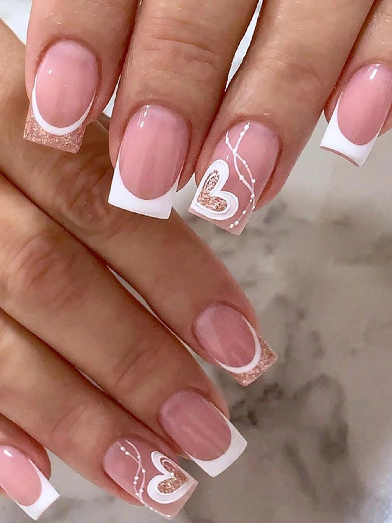 Sweetness 24 Stücke Kurz Quadrat, Herz Muster, Farbblock, Kunstnägel Bausatz