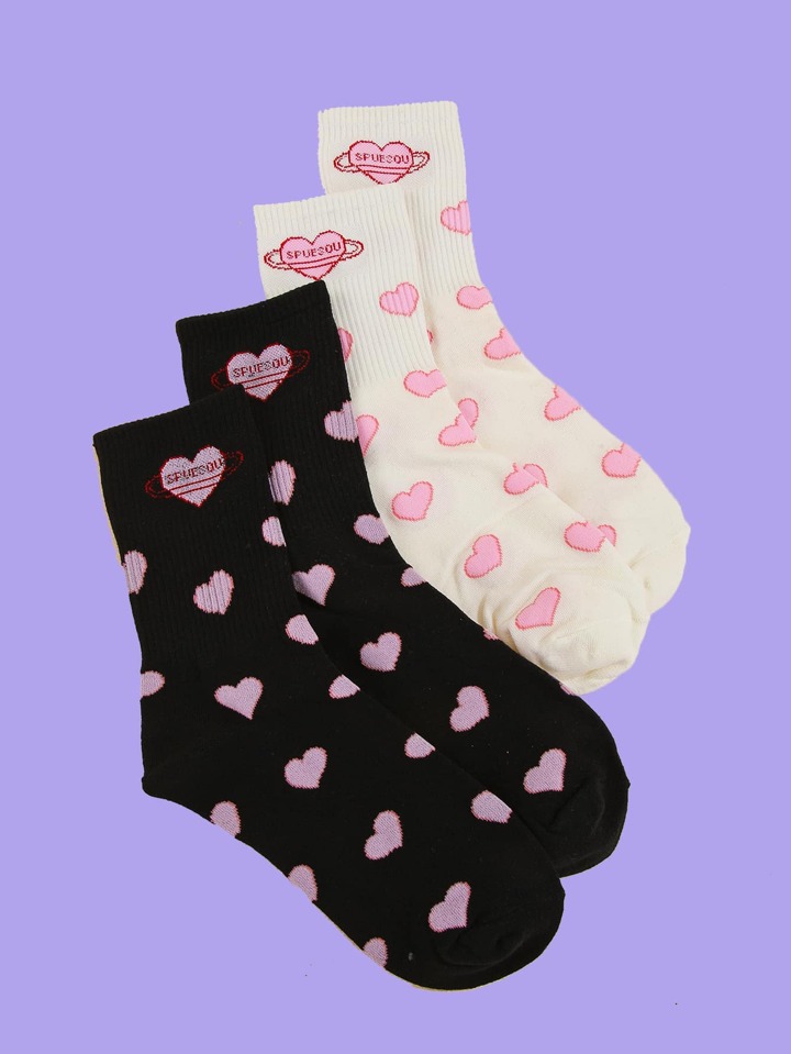 Sweetness 2 Paar Crew-Socken mit Herzen Grafik