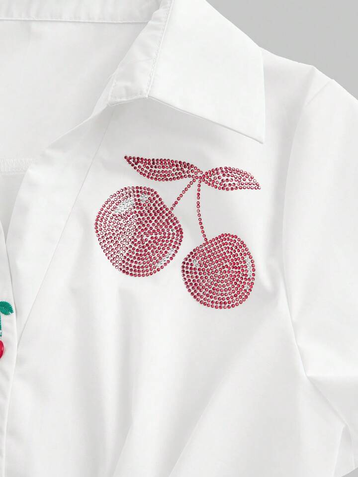 Sweetness Kirsche Knopf verziertes Strass Damen Hemd