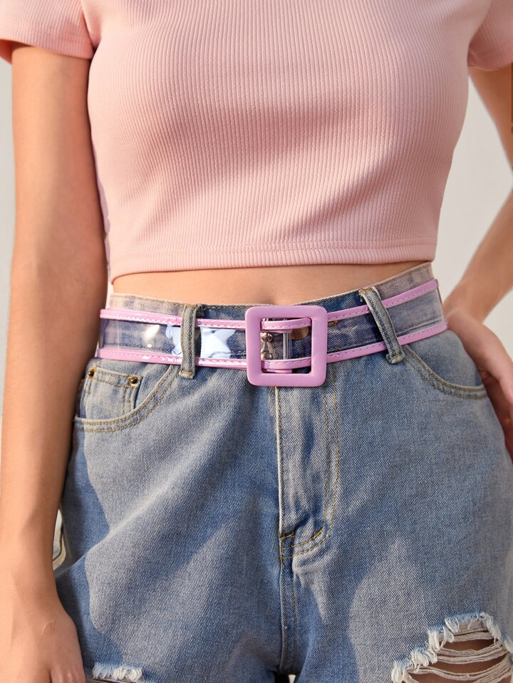Sweetness Durchsichtiger Gürtel Kontrastsaum, quadratischer Schnalle