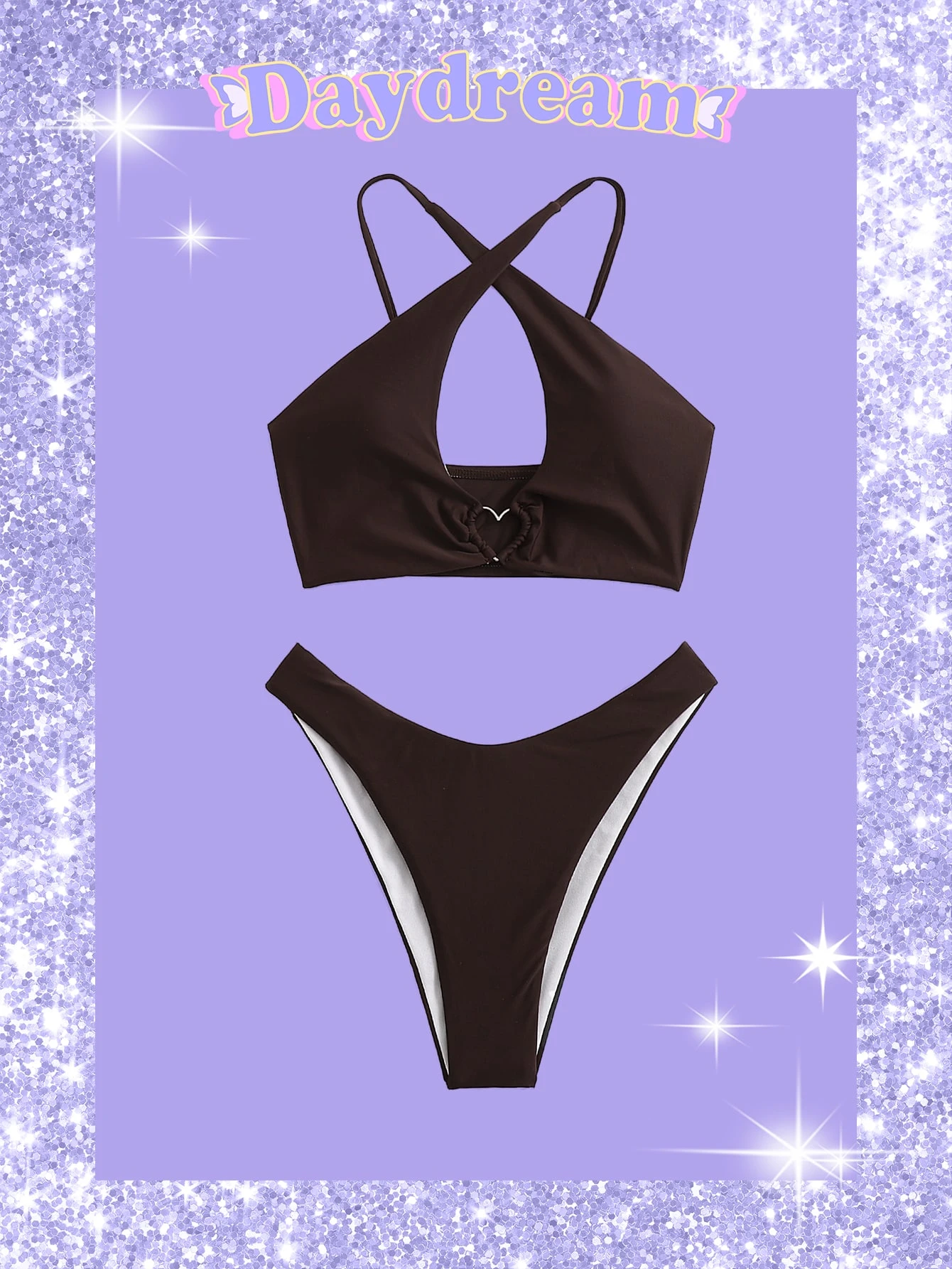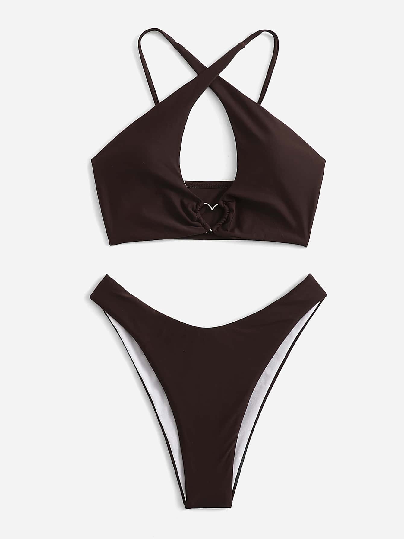 Sweetness Bikini mit Herzmuster Ring und gekreuzten Trägern