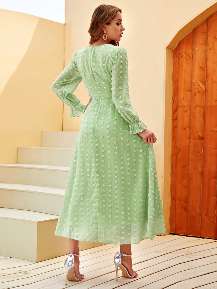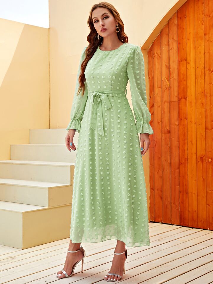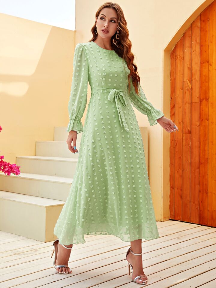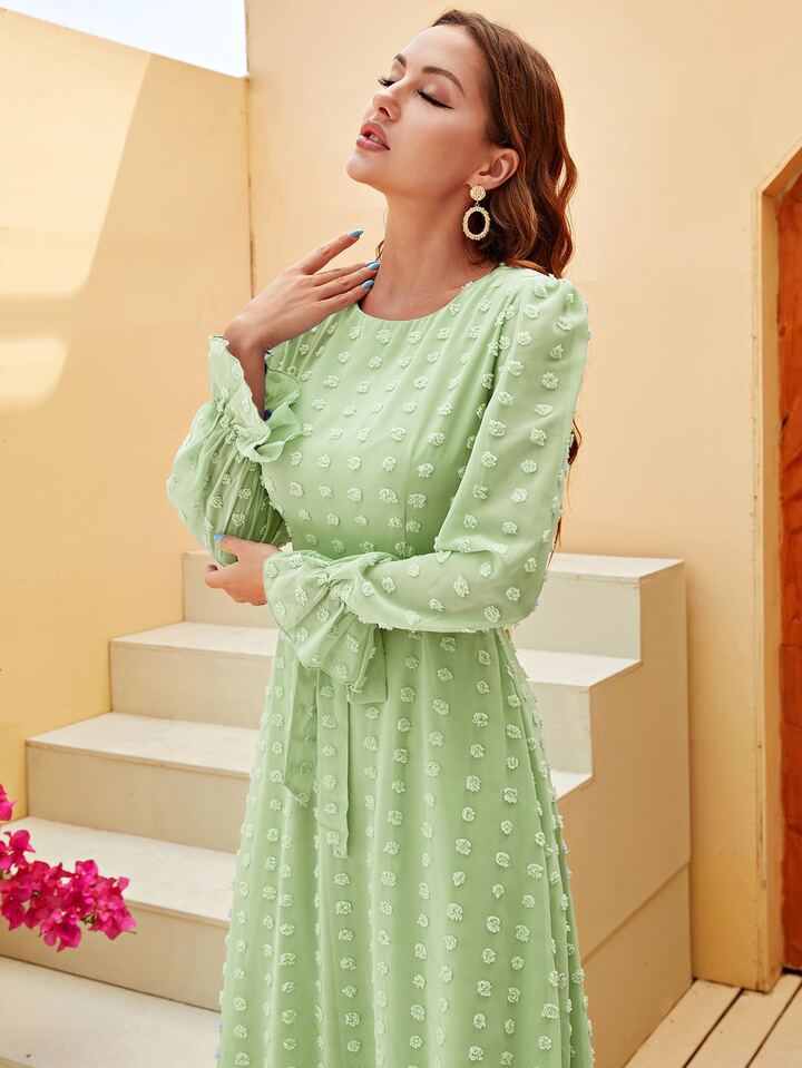 Kleid mit Punkten Muster, Schößchenärmeln und Gürtel