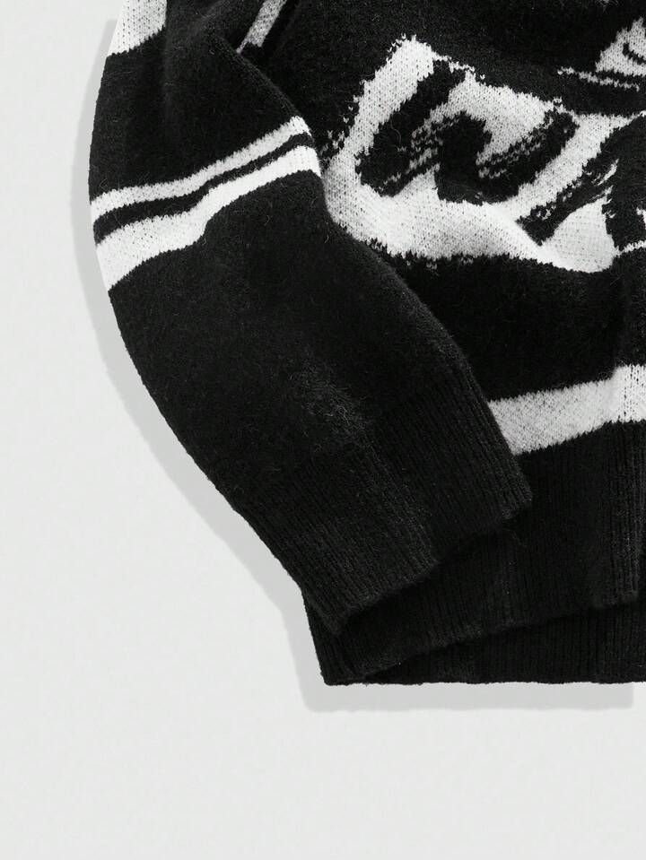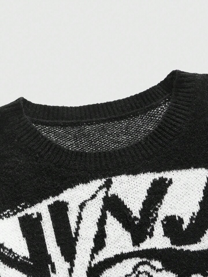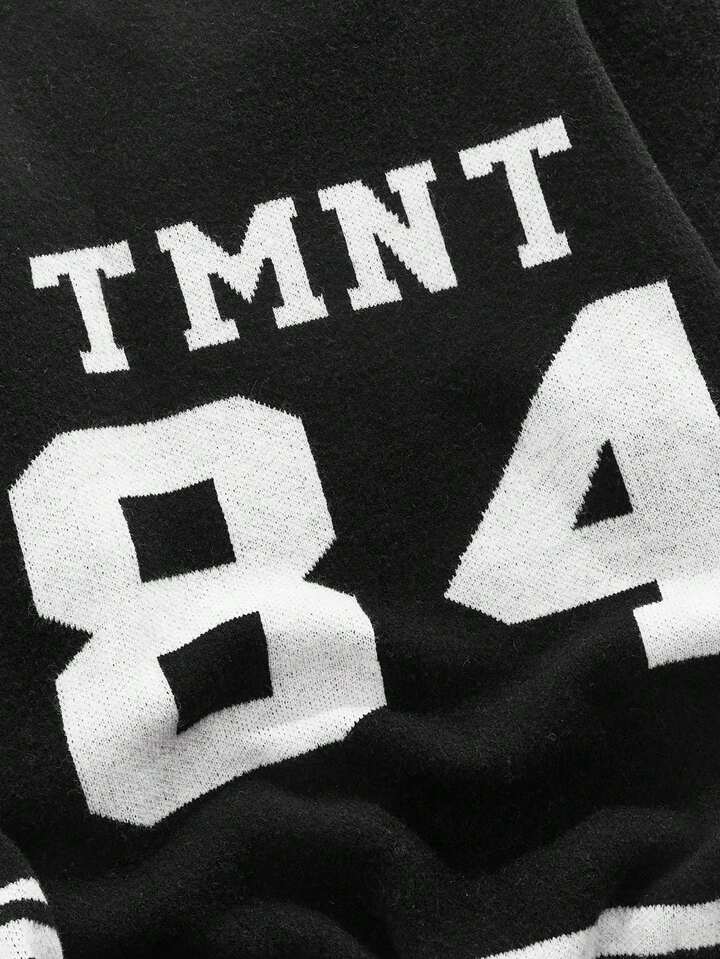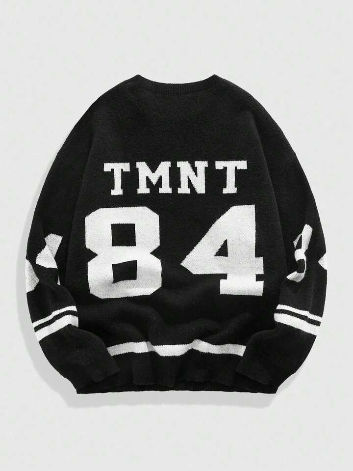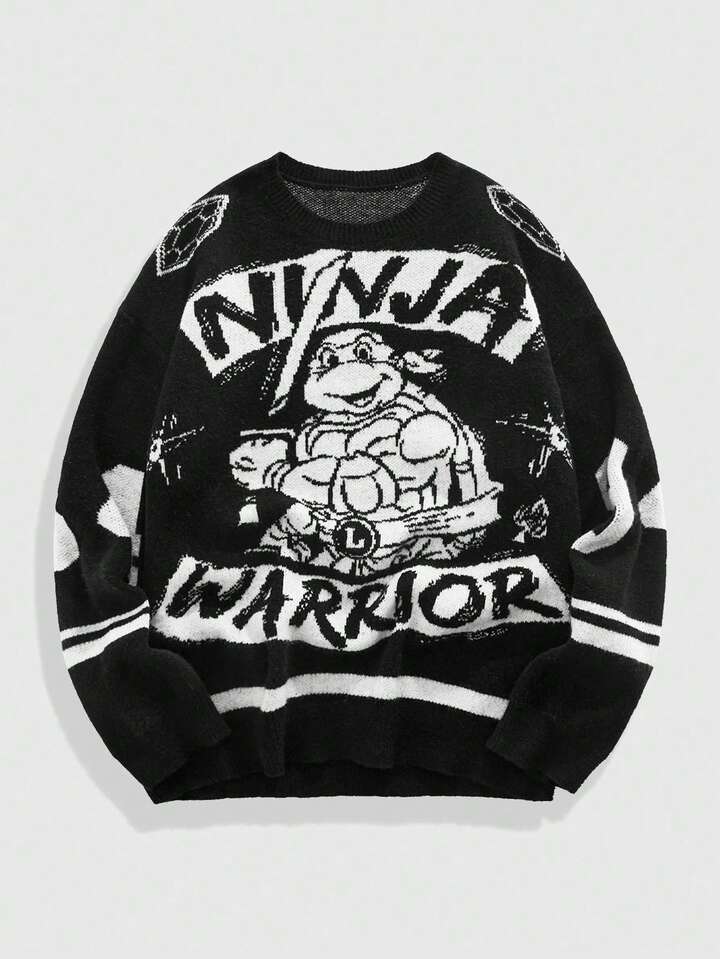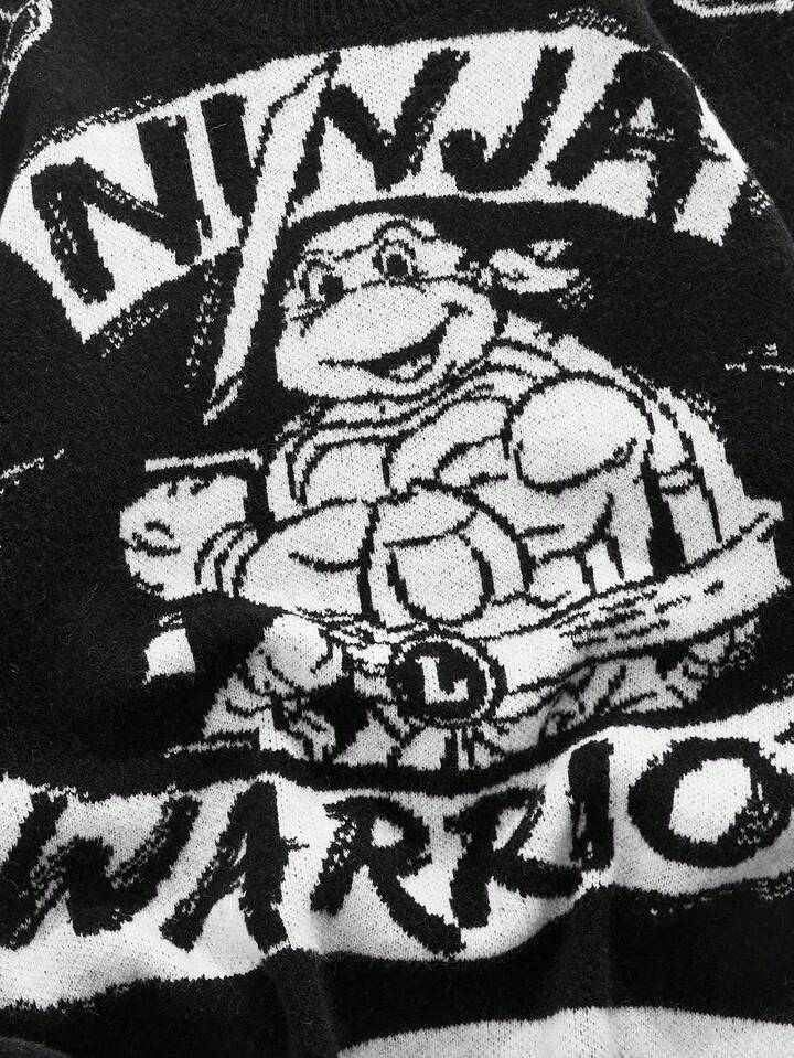 TEENAGE MUTANT NINJA TURTLES X ROMWE Herren Lässig Pullover mit Buchstaben- und Schildkrötenmuster, Rundhalsausschnitt, Herbst/Winter