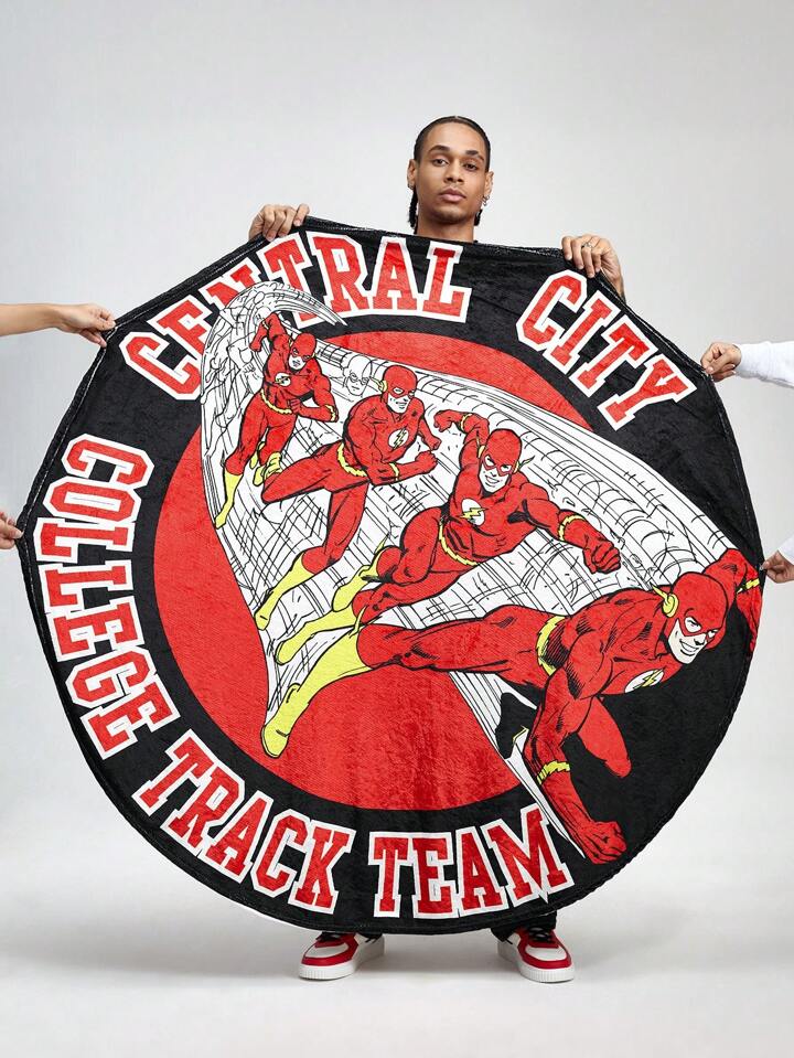 THE FLASH X ROMWE 1 Stück runde Decke mit Cartoon Figur Grafik, dicke, kuschelige beidseitig verwendbare Kuscheldecke für Büro, Sofa