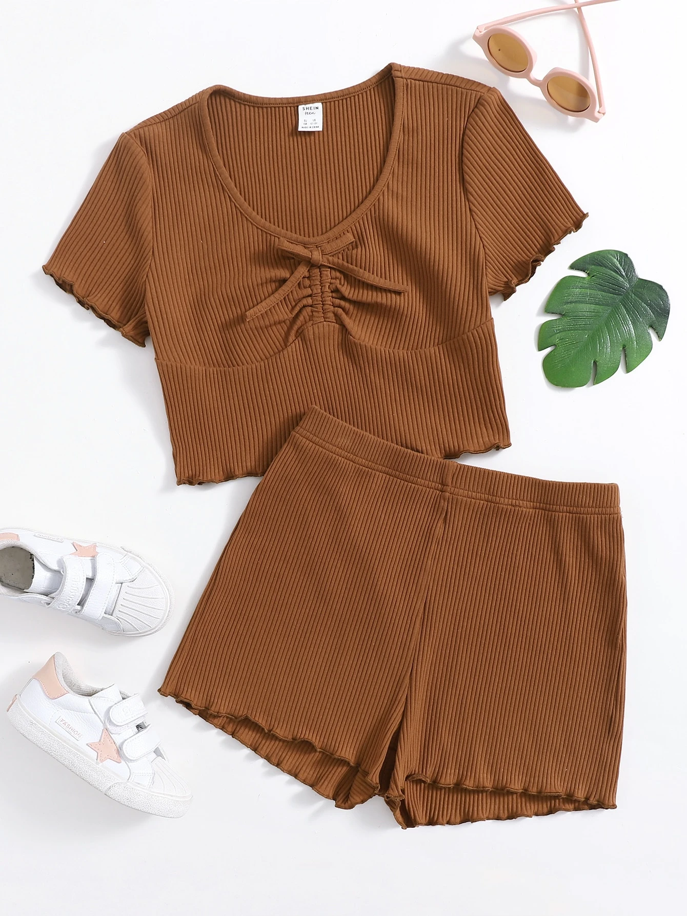 Teen Mädchen T-Shirt mit Schnürzug und Rüschen & Track Shorts