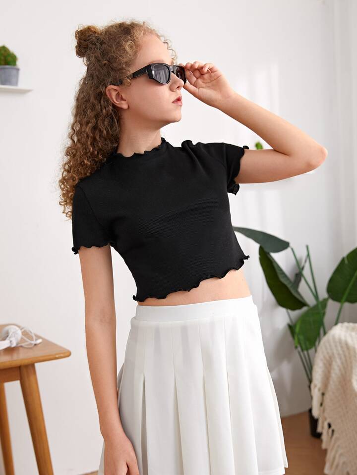 Teen Mädchen Crop T-Shirt mit gekräuseltem Saum & Rock Set mit Falten