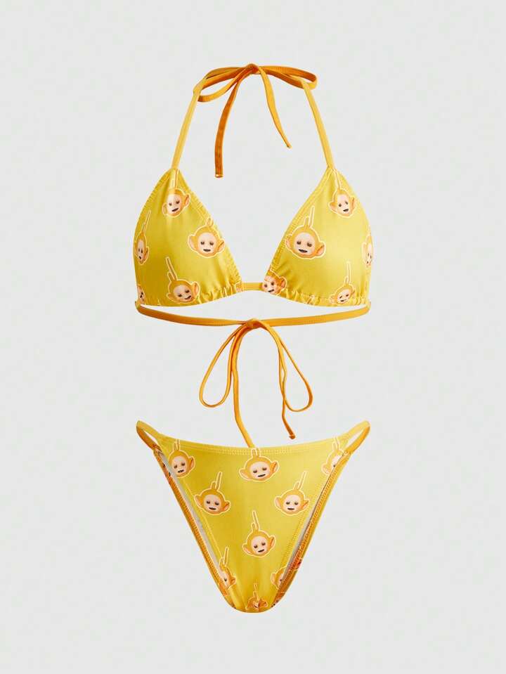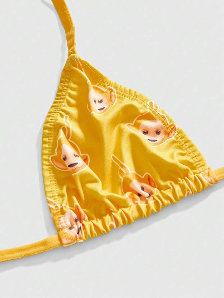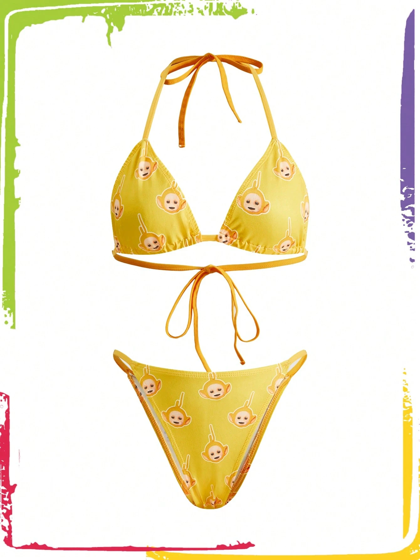 Teletubbies X ROMWE Damen Cartoon Muster Drahtloser Trägerbh und Slip Set