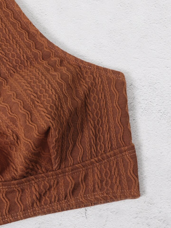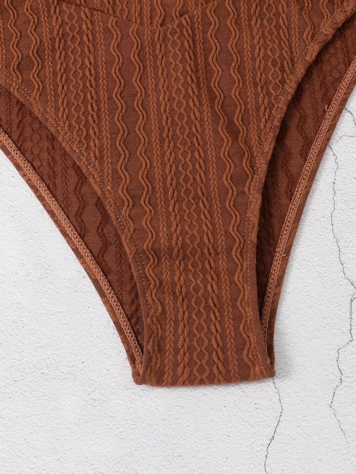 Strukturiertes Bikini Set mit Neckholder BH und Unterteil mit hohem Ausschnitt 2 teiliger Badeanzug
