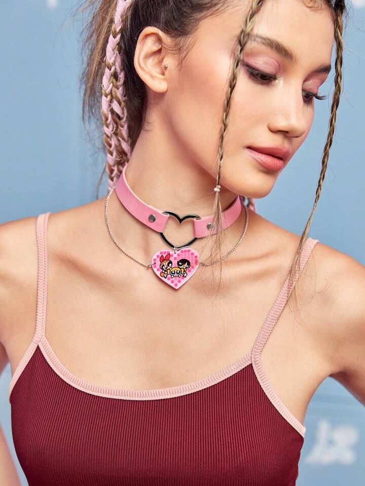 The Powerpuff Girls | ROMWE Mädchen 1 Stück PU Halsband süß PU Herz Für Frauen für Täglich Party