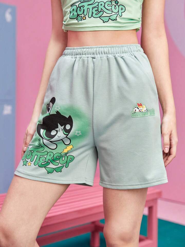 The Powerpuff Girls | ROMWE Trainingsshorts mit Cartoon Grafik,