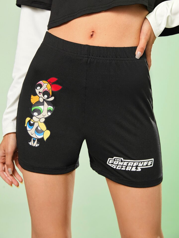 The Powerpuff Girls | ROMWE Radlerhose mit Cartoon & Buchstabe Grafik