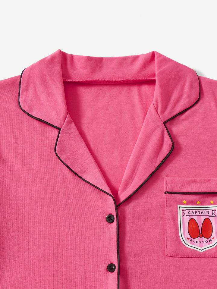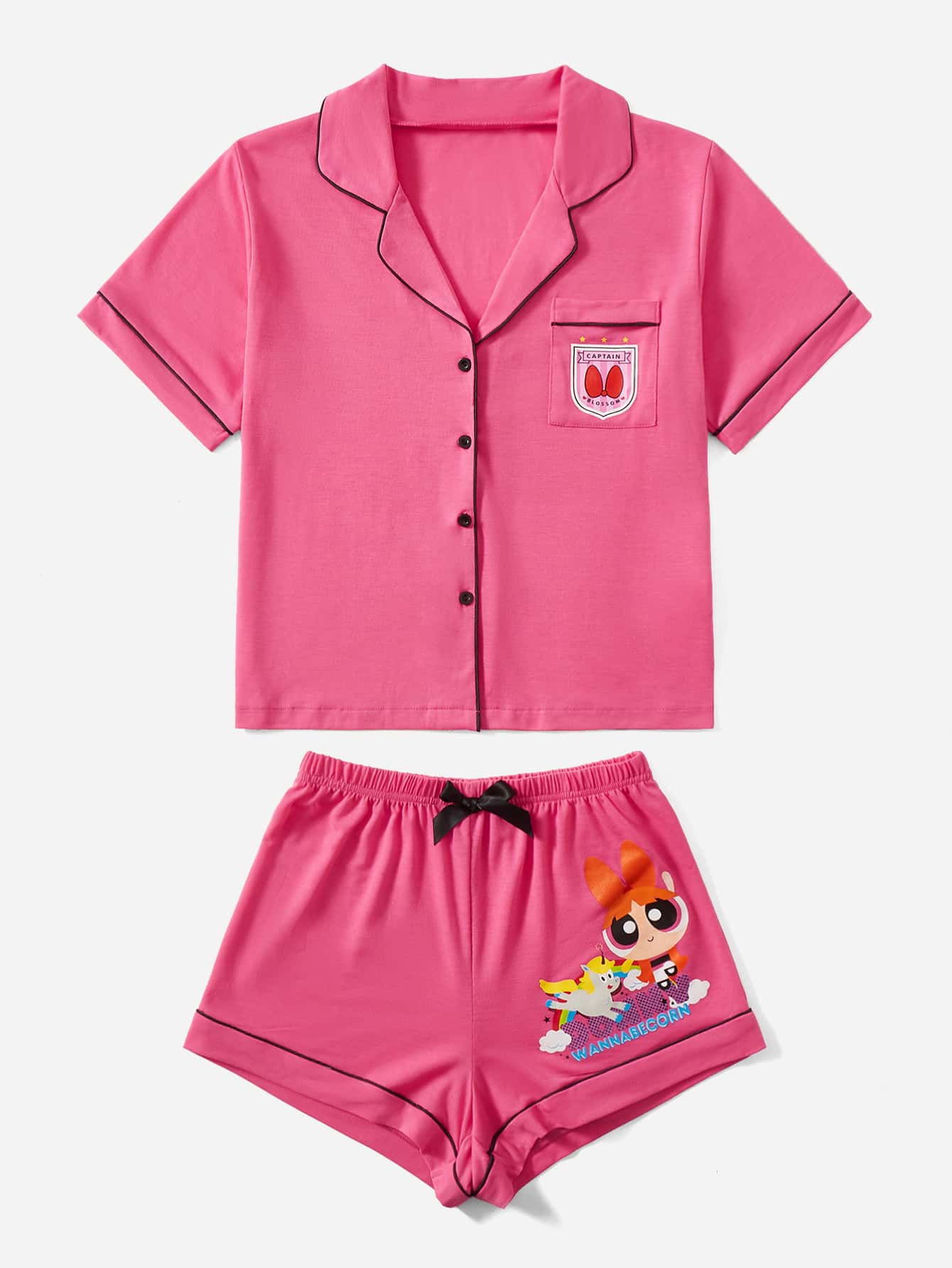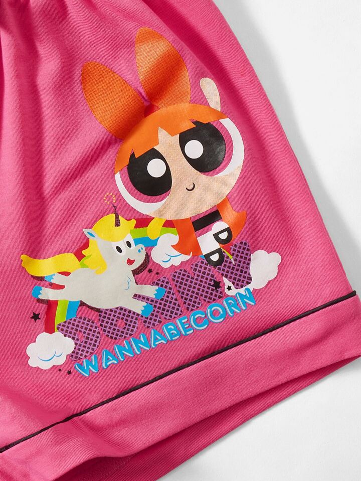 The Powerpuff Girls | ROMWE Buchstaben Cartoon Grafik Kontrast-Bindung Pyjama Set, Schule