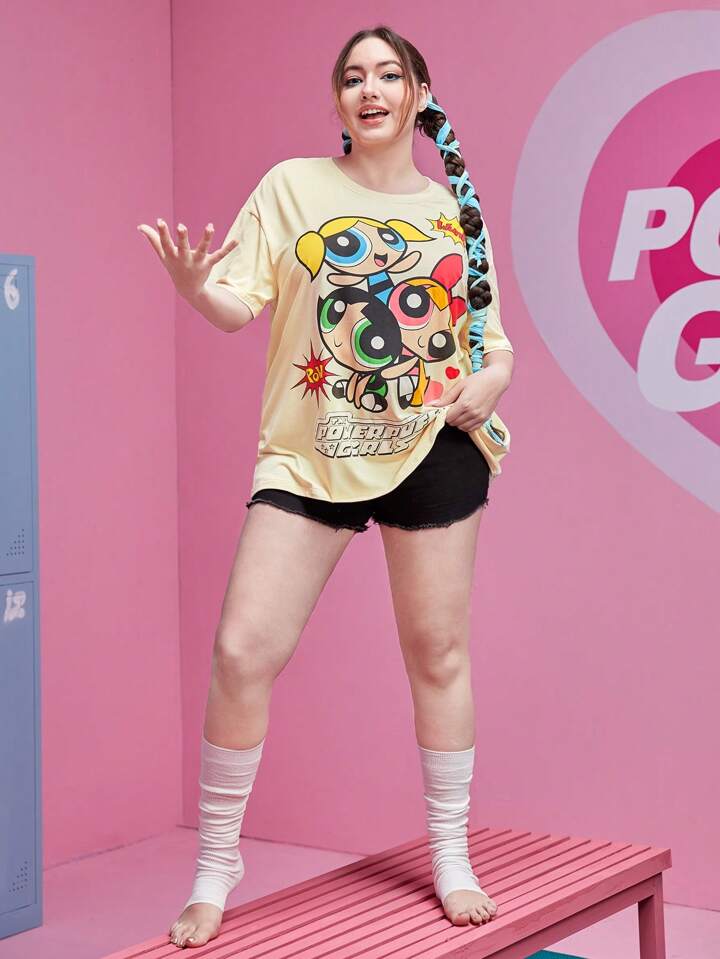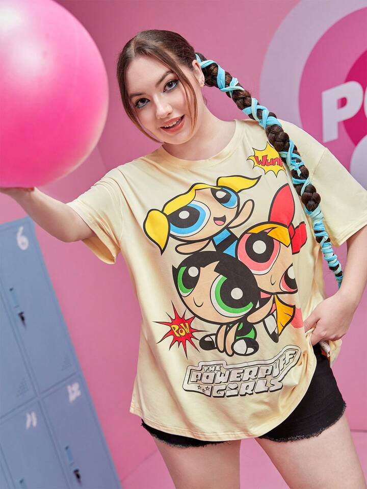 The Powerpuff Girls | ROMWE Drop Shoulder T-Shirt mit Cartoon Grafik,