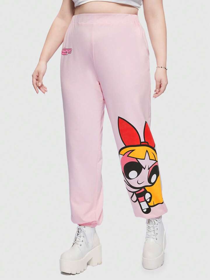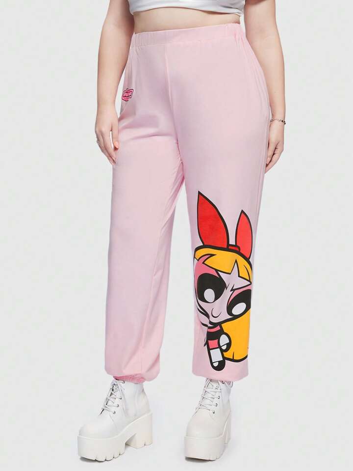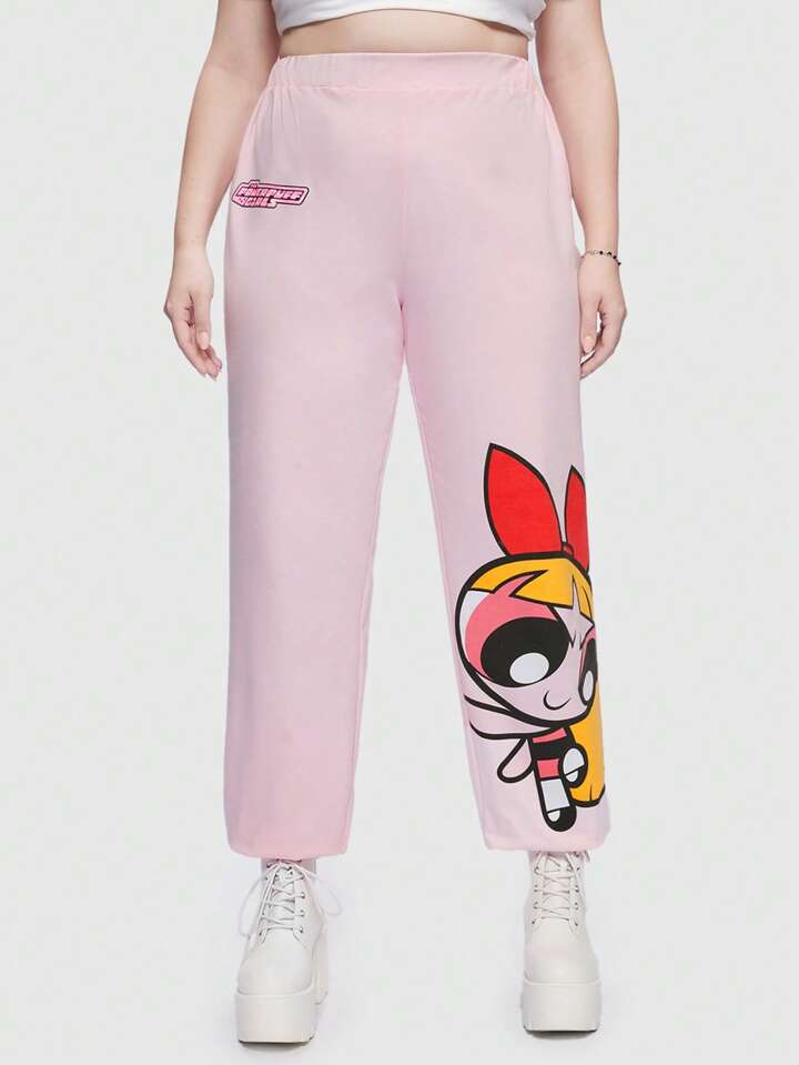The Powerpuff Girls | ROMWE Große Größe Hose mit Cartoon Grafik,