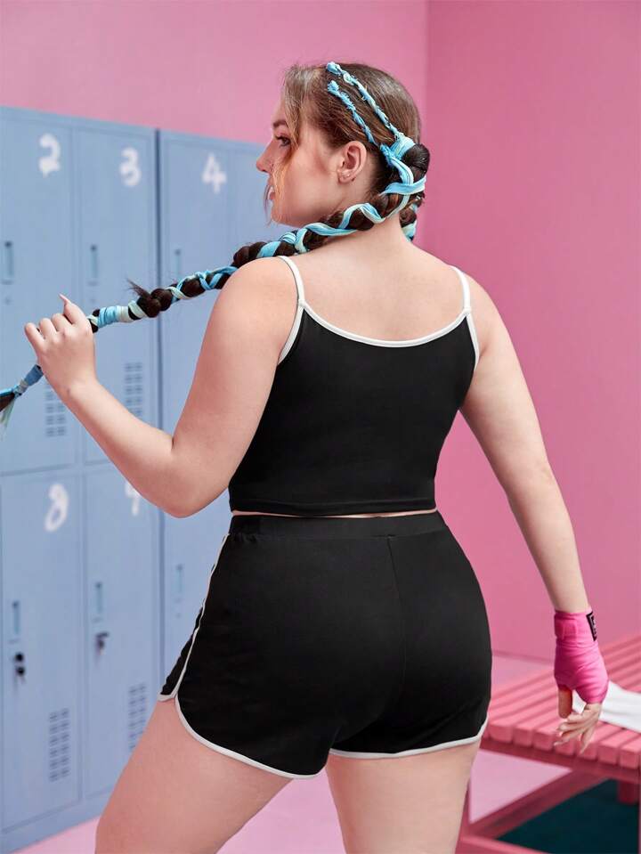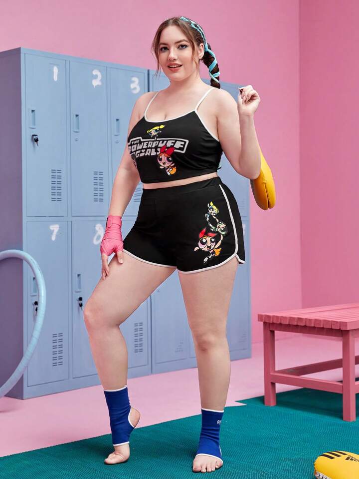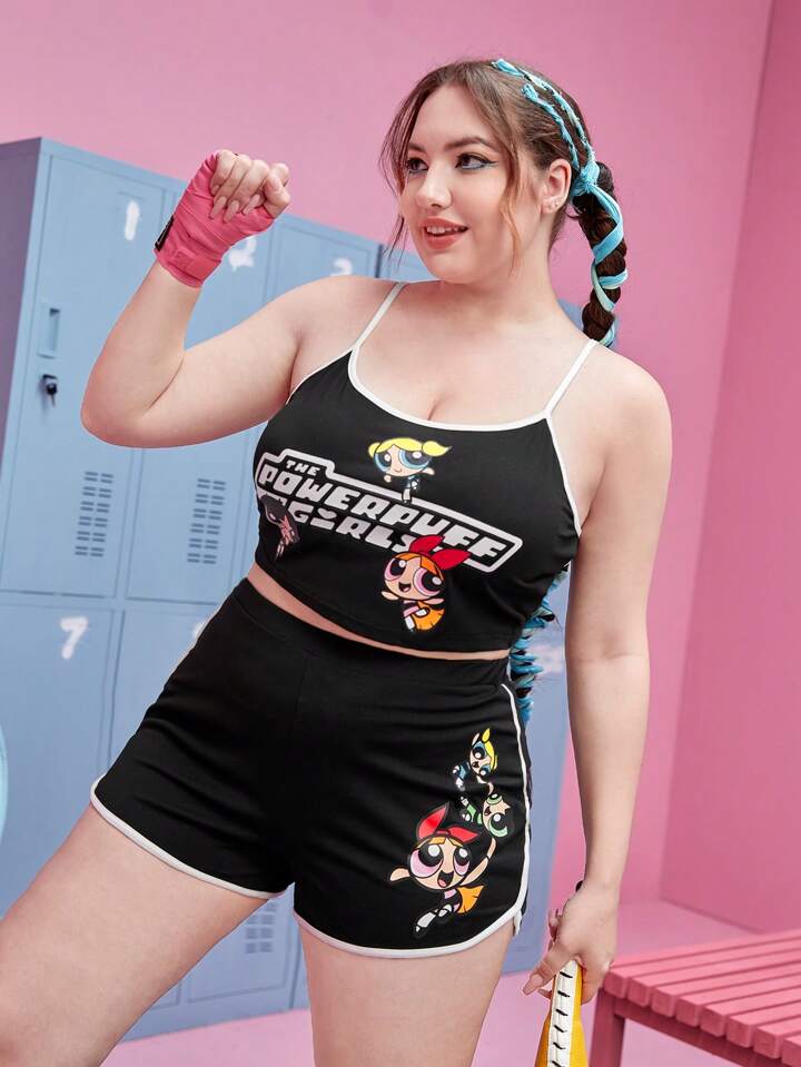The Powerpuff Girls | ROMWE Shorts & Cami Top mit Buchstabe & Cartoon Grafik, Kontrastsaum,