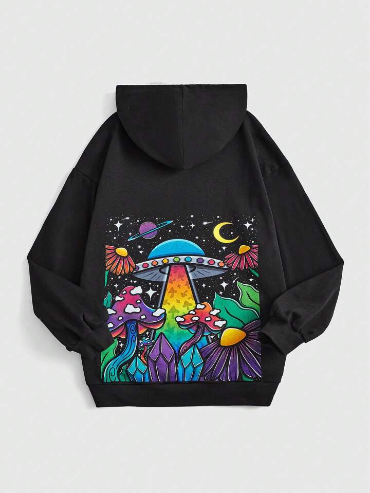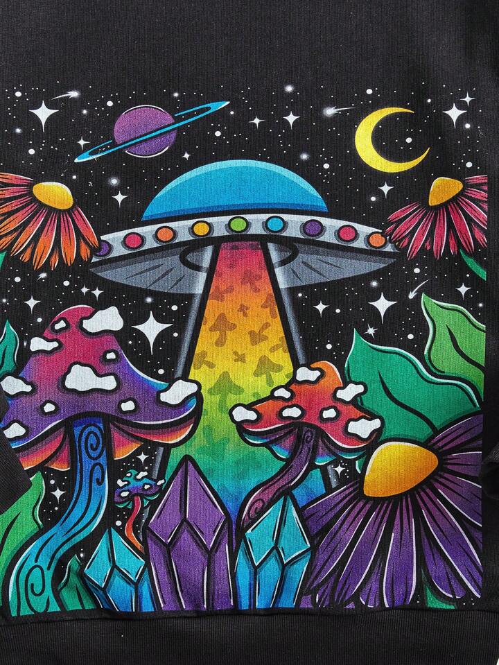 ThisUniqueVibe Hoodie mit Pilz & UFO Muster