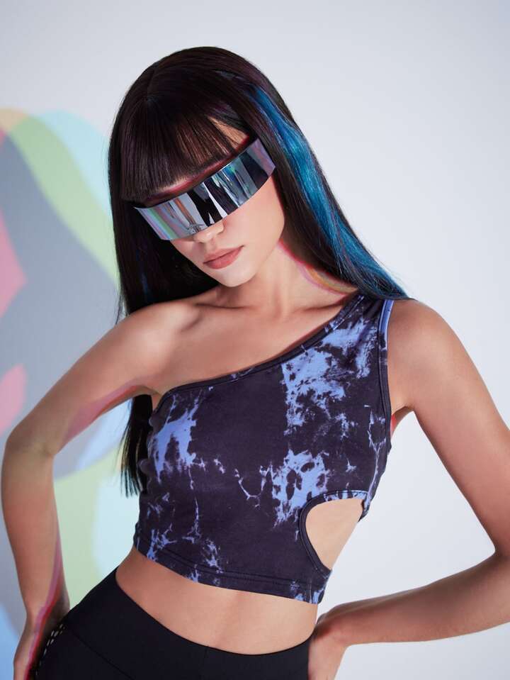 Top mit Batik, einer Schulter frei, Ausschnitt