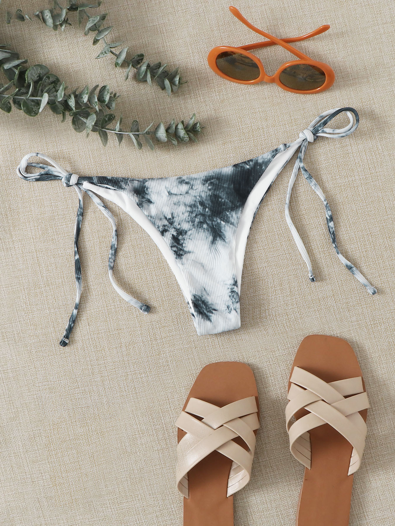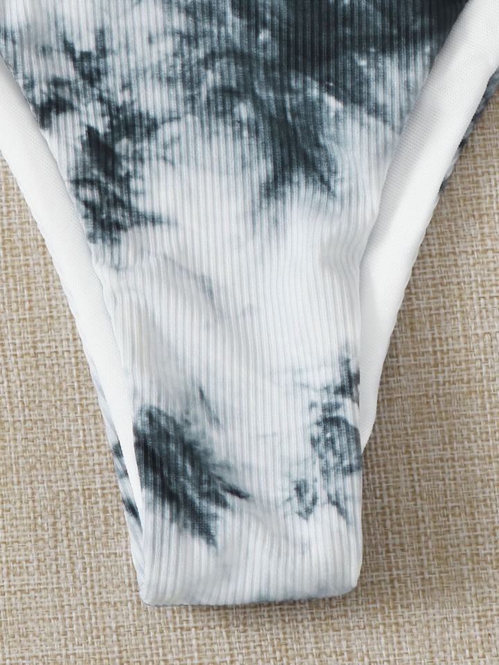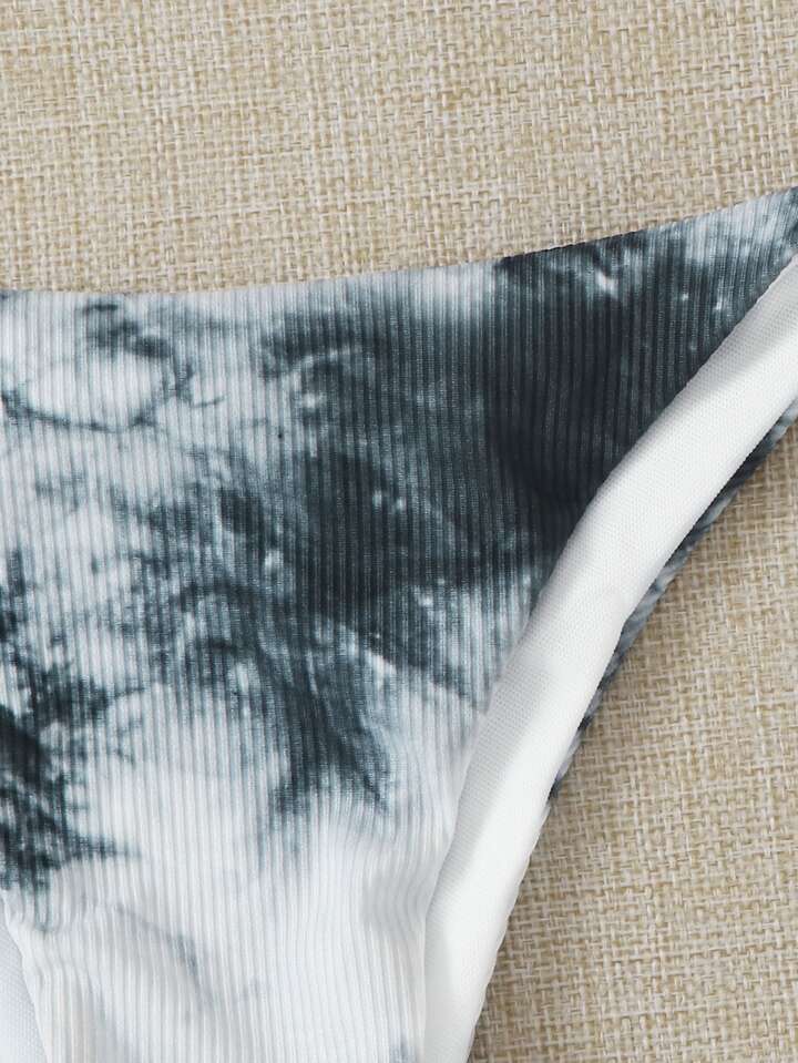 Gerippte Bikini Höschen mit Batik und seitlichem Band