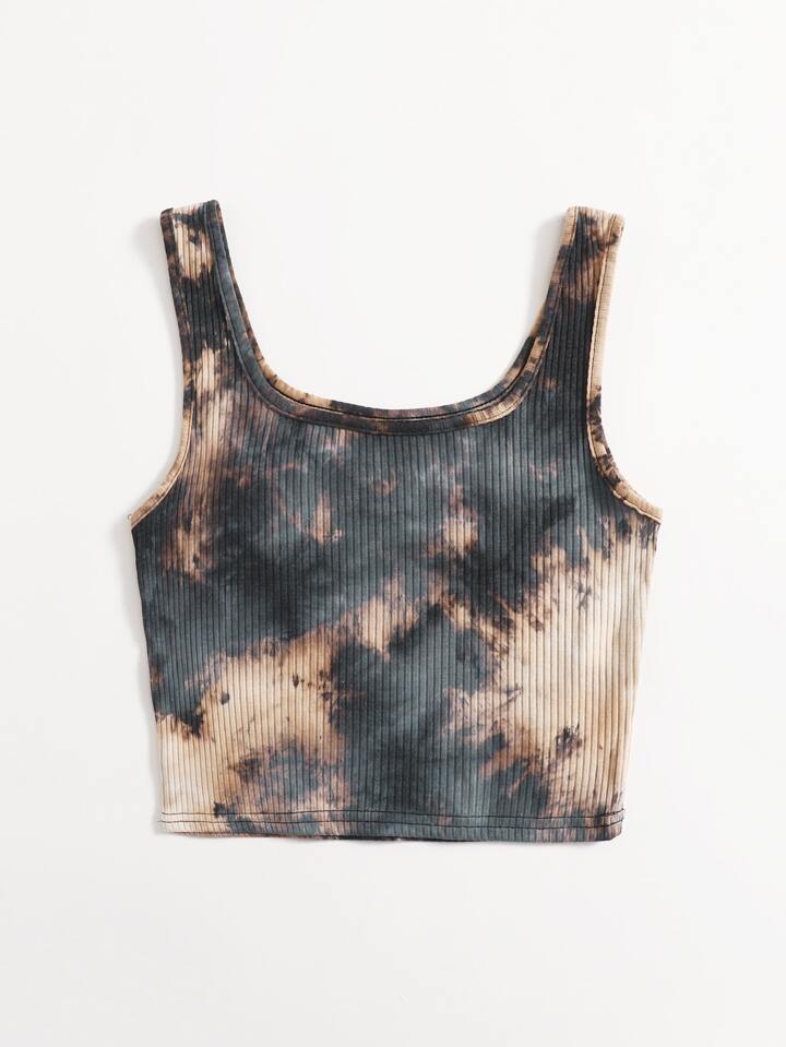 Geripptes Tank Top mit Batik