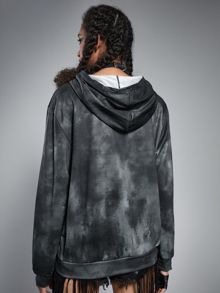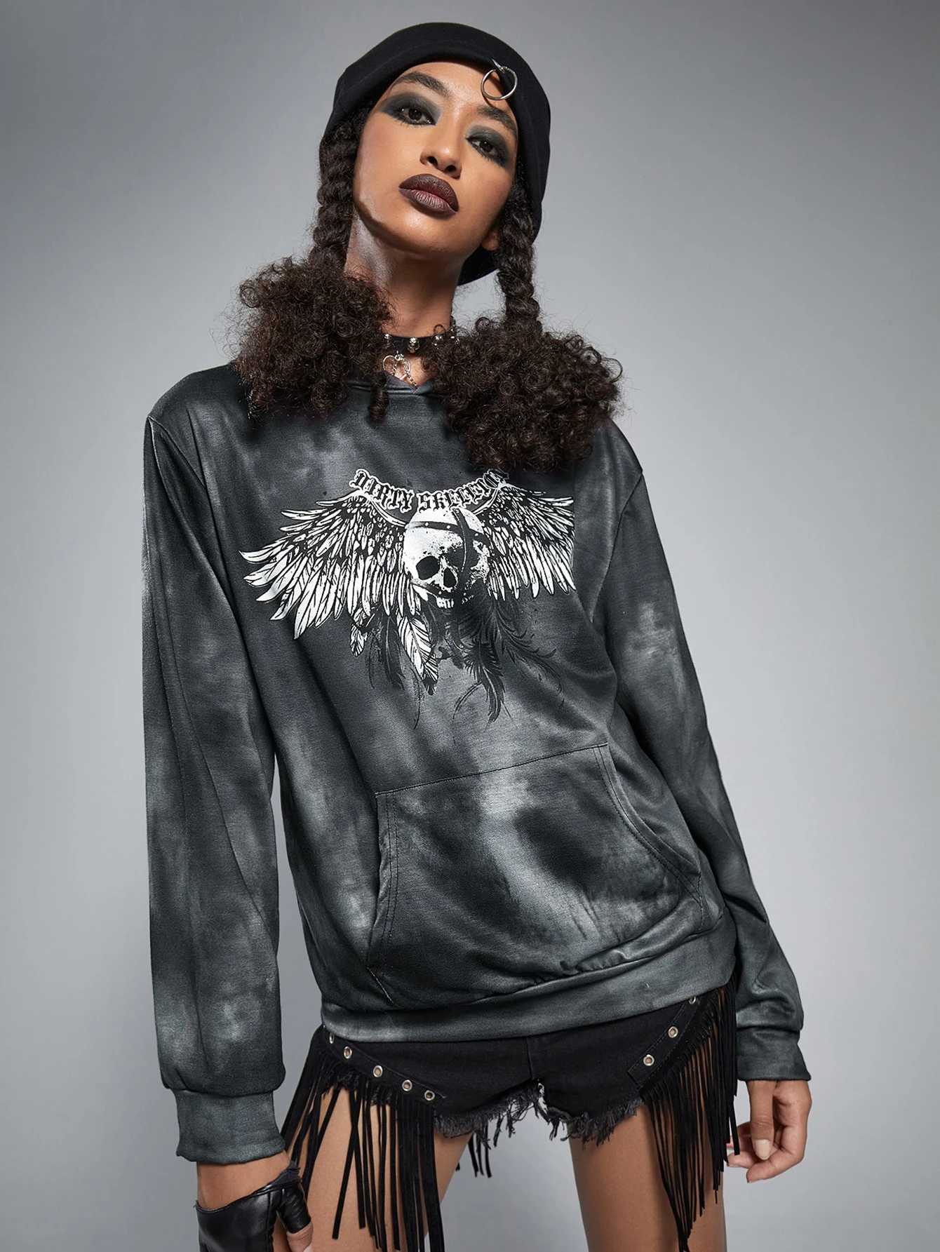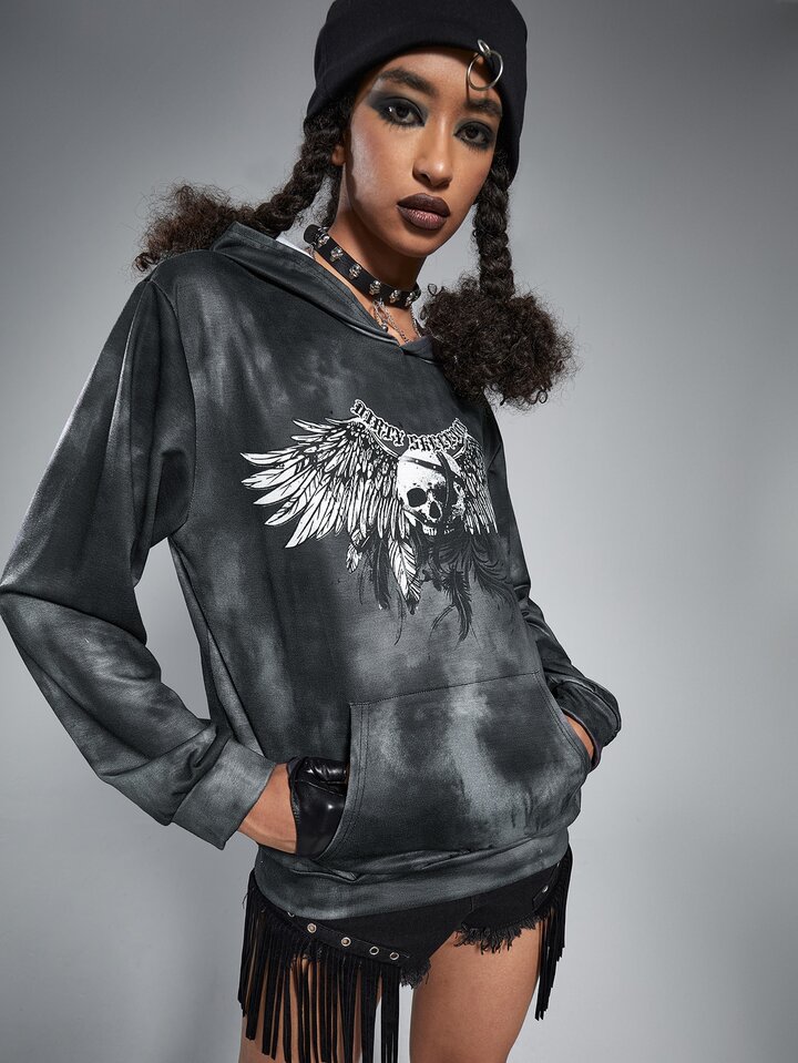 Hoodie mit Batik, Schädel Grafik, Känguru-Tasche