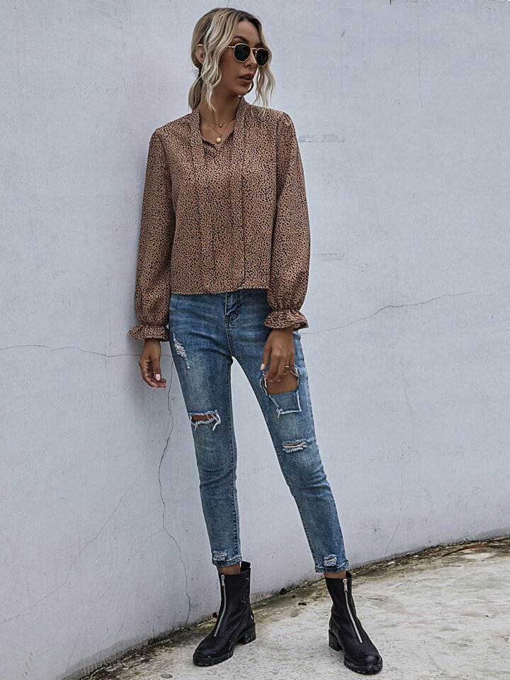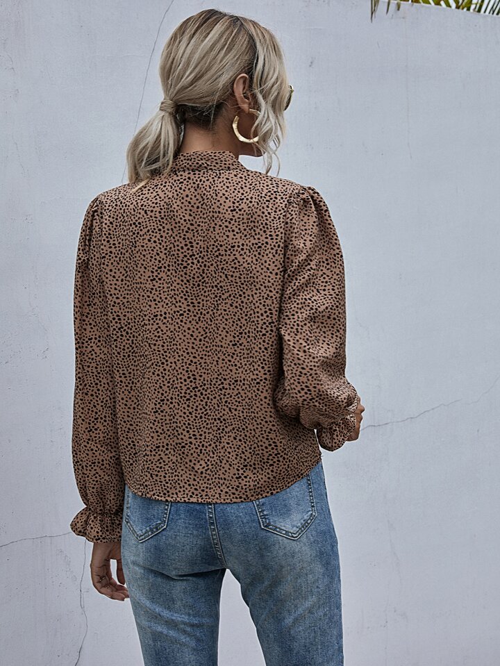 Bluse mit Halsband, Schößchenärmeln und Muster