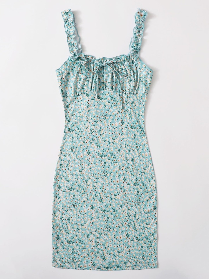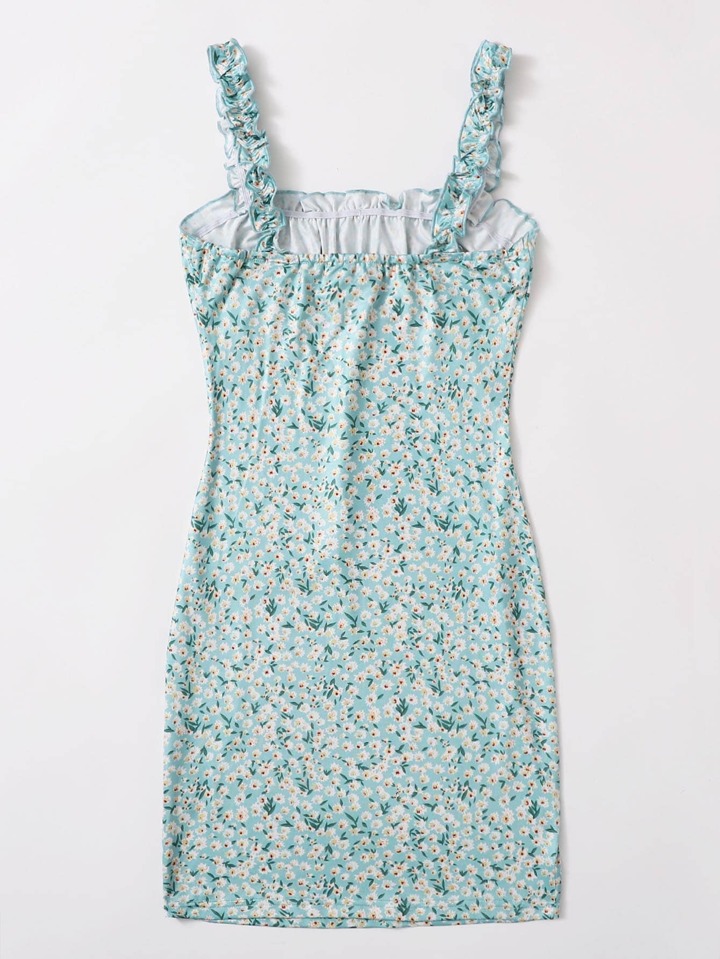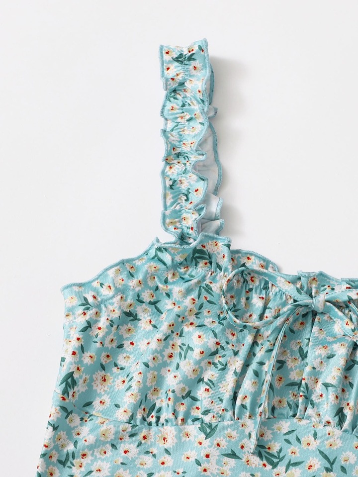Kleid mit Halsband, Rüsche, Rüschenbesatz und Blümchen Muster