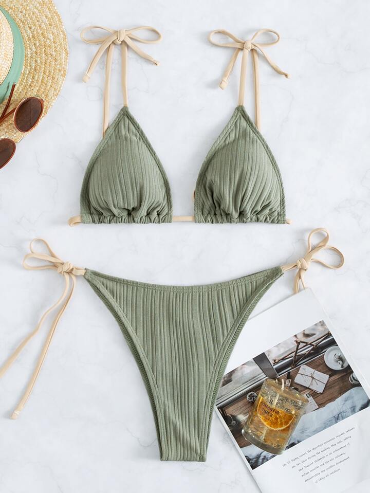 Dreieck-Bikini-Set mit Bindeträgern, für Sommerurlaub am Strand