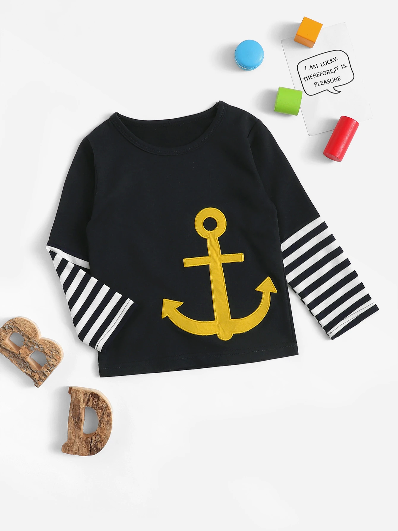 Kleinkind Jungen Sweatshirt mit Anker Stickereien und Streifen