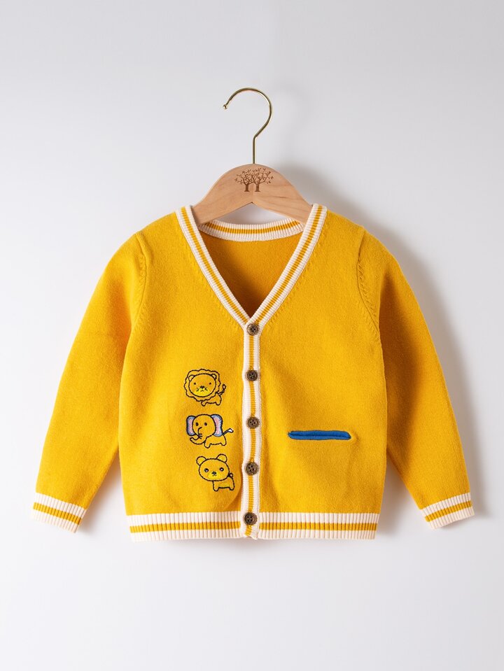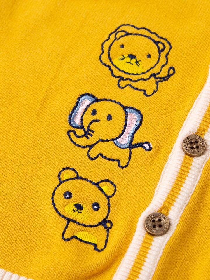 Cardigan mit Karikatur Stickereien und Kontrast-Besatz