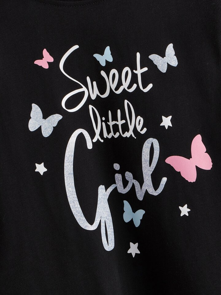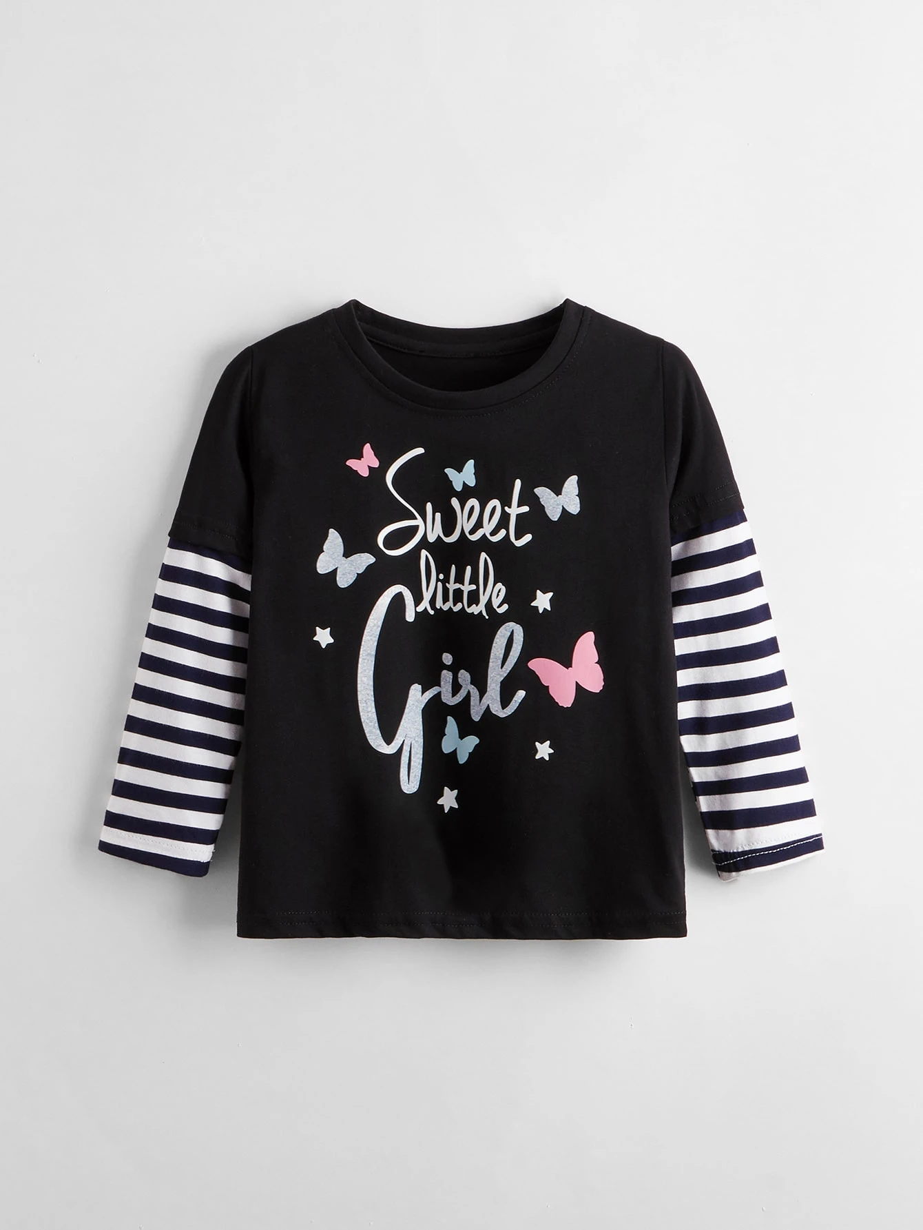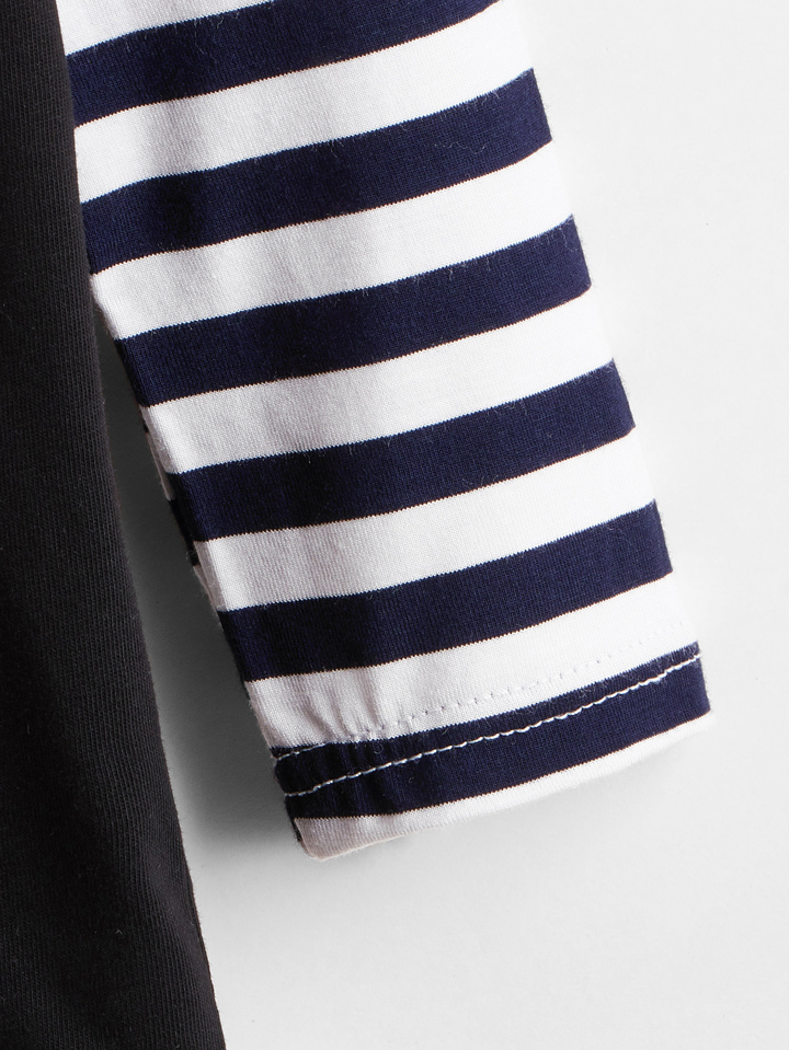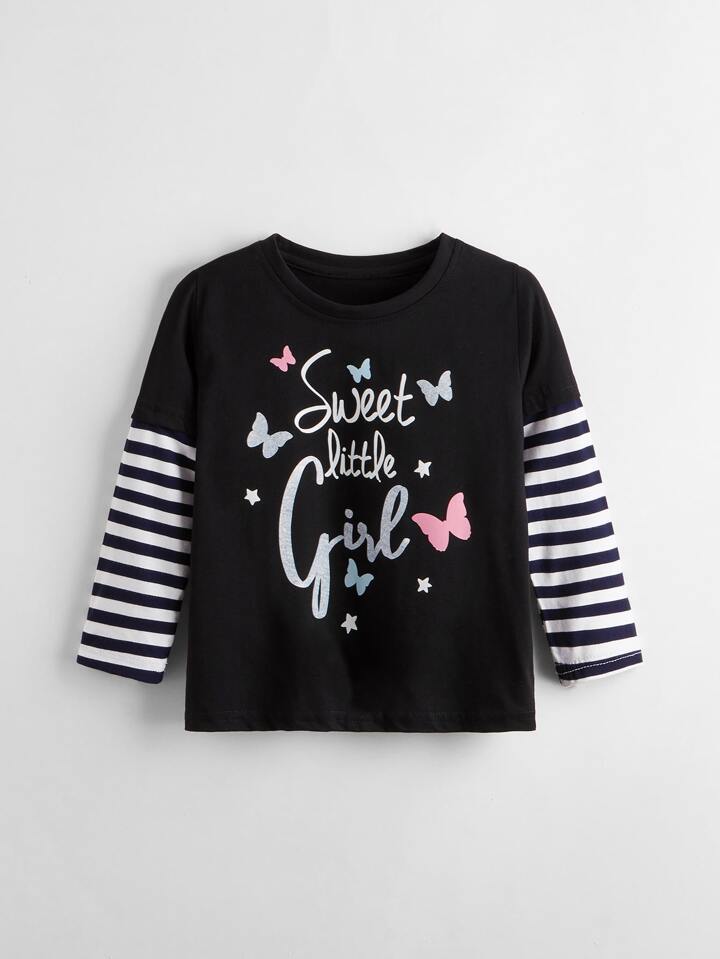 Kleinkind Mädchen 2 In 1 T-Shirt mit Buchstaben Grafik und Streifen auf Ärmeln