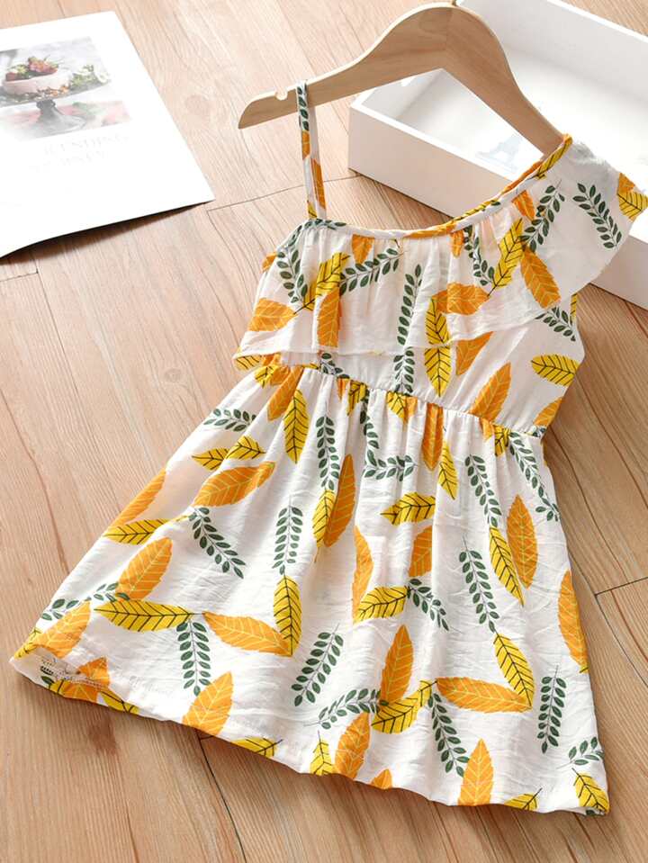 Kleinkind Mädchen Kleid mit asymmetrischem Ausschnitt und Pflanzen Muster