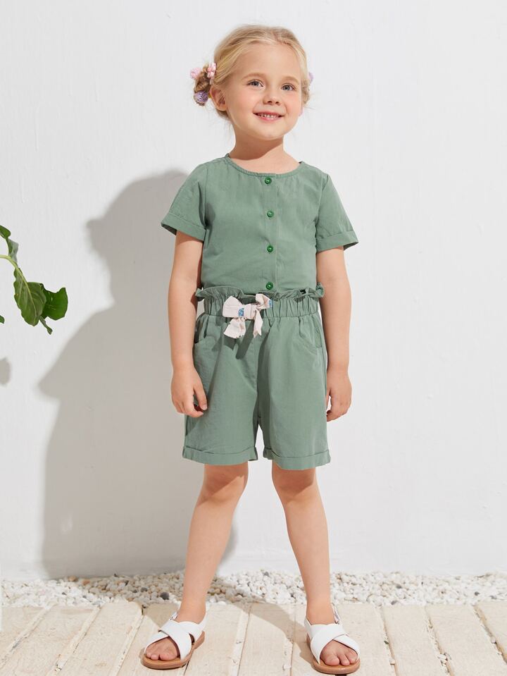 Shorts mit Schleife vorne und Papiertasche-Taille