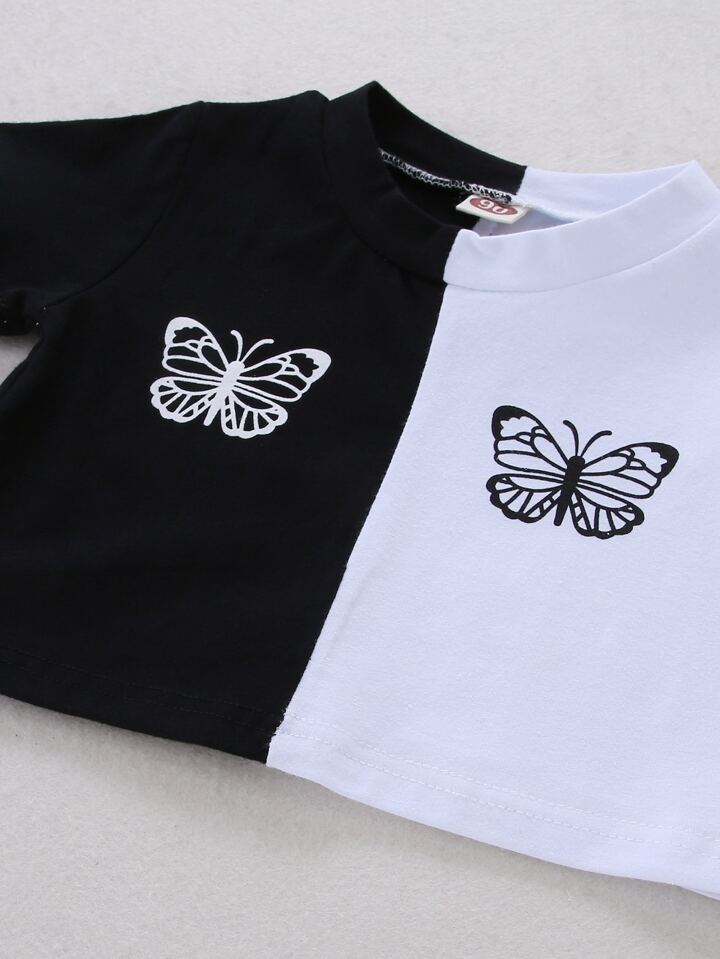 T-Shirt mit Schmetterling Muster & Jogginghose mit Plaid Muster
